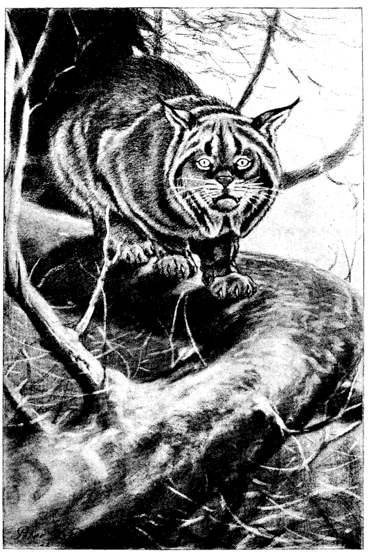 It was starlight in the open spaces, shadowy under the trees, when he was awakened by a peculiar shiver that ran along his spine and made the fur on the back of his neck prickle. This, he knew, meant danger, though at first he could not see what it was that menaced him. Then, suddenly, he noticed a slinking, almost soundless movement along the limb of a tree between him and the wapiti on the creek bank.