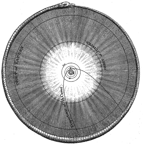 That of the most distant Comet 390, and the nearest of the Stars not less than 6875,[AV] Radius's of the Orbis Magnus.