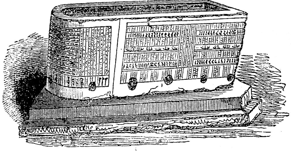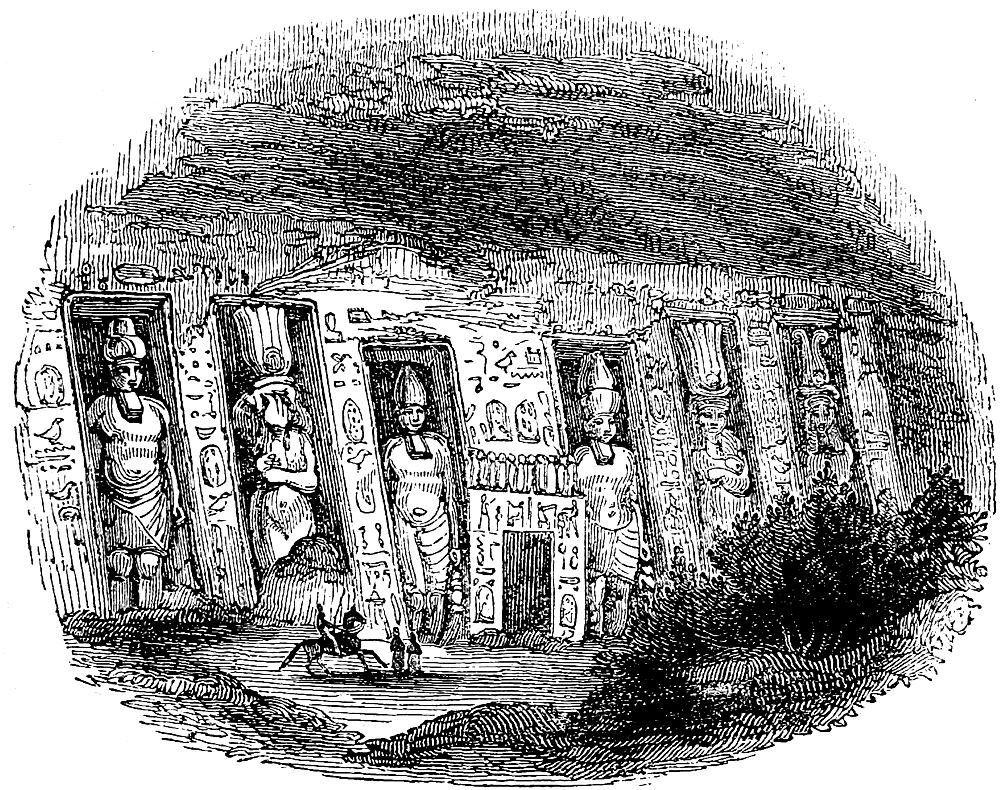 To narrate all the enterprises of Belzoni would occupy volumes. Let us allude but to one more. He uncovered the front of the great Sphynx—that gigantic monument which has been synonymous with “Mystery” from the remotest ages of history. Numerous pieces of antiquity were as unexpectedly as extraordinarily developed by this enterprise—pieces which, for many centuries, had not been exposed to human eyes. Among other things, a beautiful temple, cut out of one piece of granite, yet of considerable dimensions, was discovered between the legs of the sphynx, having within it a sculptured lion and a small sphynx. In one of the paws of the great sphynx was another temple with a sculptured[Pg 242] lion standing on an altar. In front of the great sphynx were the remains of buildings, apparently temples, and several granite slabs with inscriptions cut into them, some entire and others broken. One of these is by Claudius Cæsar, recording his visits to the pyramids, and another by Antoninus Pius, both of which, with the little lions, are now in the British Museum.