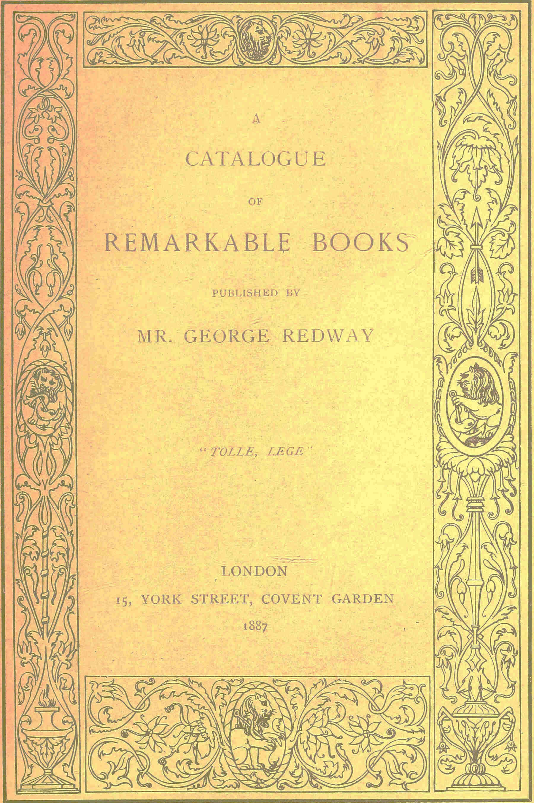 *** START OF THE PROJECT GUTENBERG EBOOK A CATALOGUE OF REMARKABLE BOOKS PUBLISHED BY MR. GEORGE REDWAY (1887) ***
