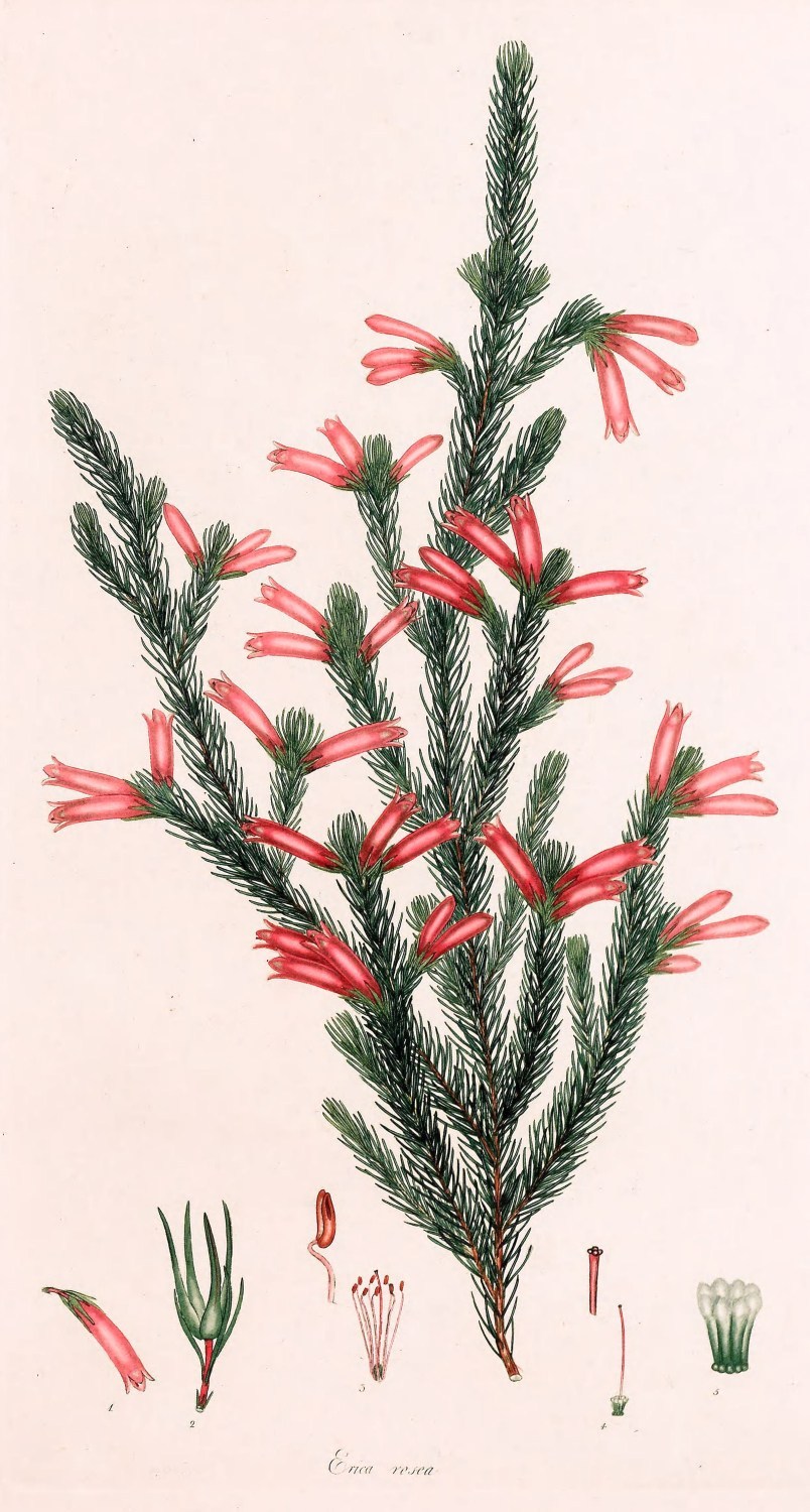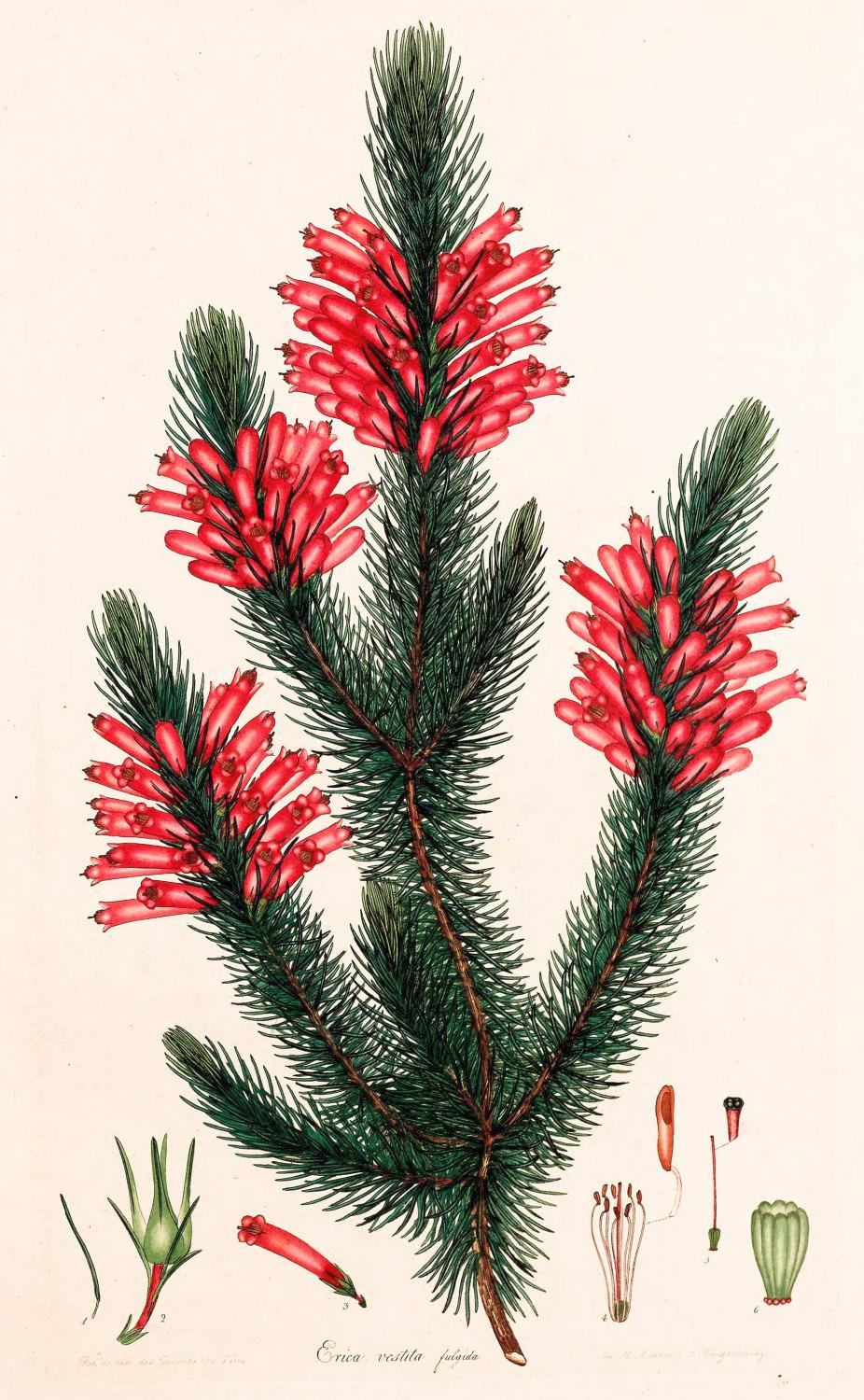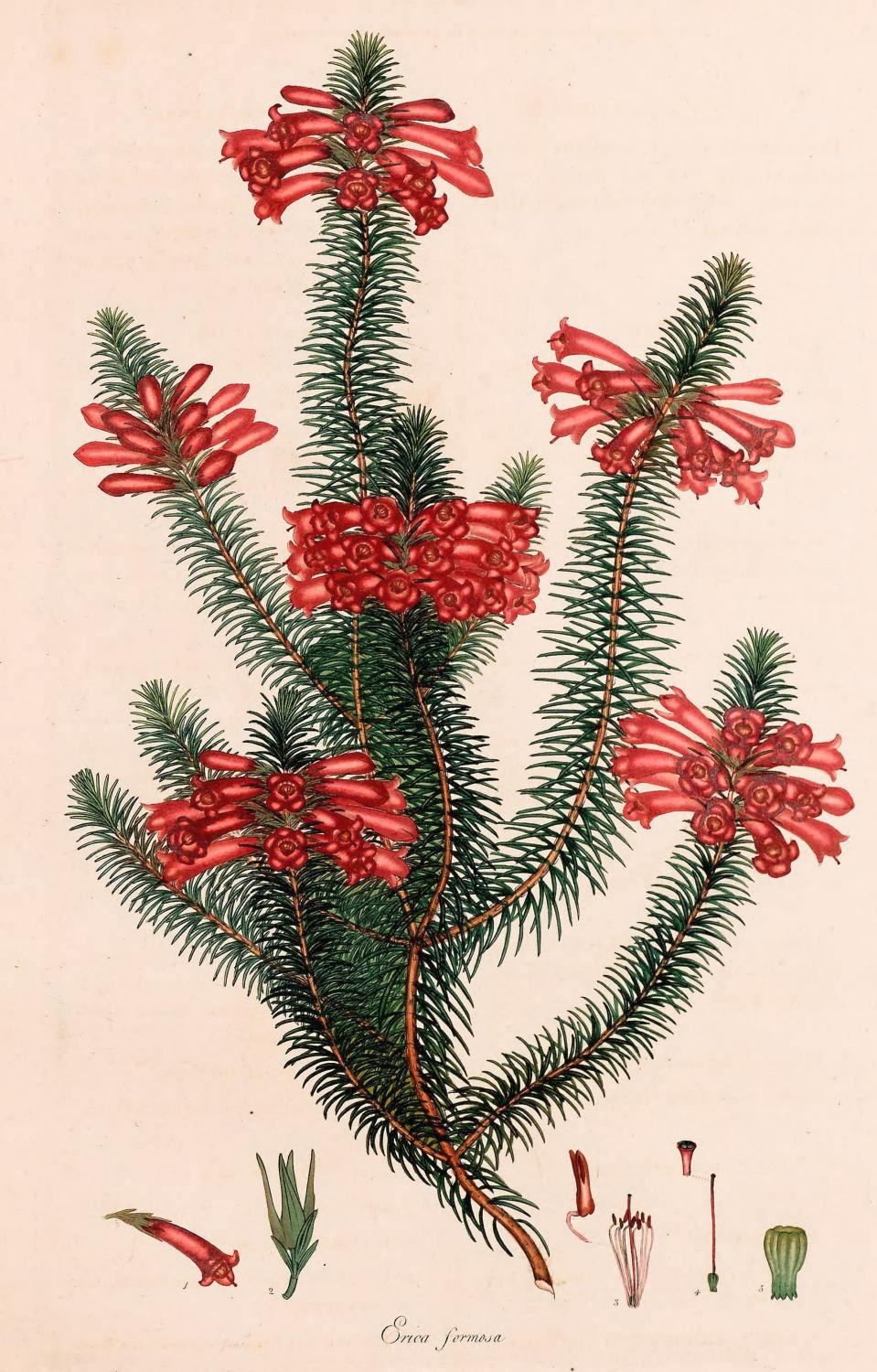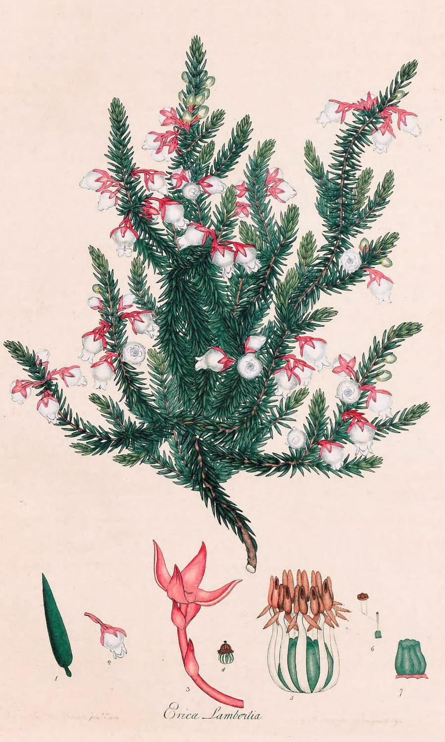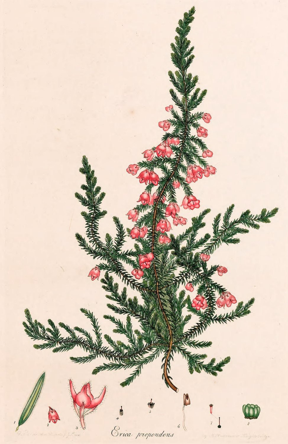 THE unabating ardour that still prevails in the science of botany, and rather increases than diminishes, renders it almost impossible (from the extreme minutiæ annexed to this elegant tribe) for the pencil of the artist to keep pace with the numerous importations from the Cape (at present the sole emporium of the genus Erica); the limits of the genus it is impossible at present to prescribe, but by the termination of the next volume we have no doubt of being able to ascertain, in some measure, its extent. The author’s intention is therefore to figure (first) all the most elegant and desirable of the genus, including many very beautiful varieties, of recent introduction, that far surpass those from which they derive their name; reserving, as a dernier ressort, the most uninteresting and least attractive, to subjoin at the termination of the genus, as necessary links in the chain of this extensive family. The great difficulty attending the cultivation of many of the species, so generally complained of, can only be surmounted by great care and attention to keep them from the partial damps and fogs so prevalent in this island. Among the most tender and difficult to preserve, and which require the most care, are the E. obbata, E. retorta, E. ampullacea, E. Aitonia, E. Jasminiflora, E. vestita alba, and E. Massonia; the last of which is perhaps the most tender, owing most likely to the closeness of the leaves, joined with the soft hairs that surround them, which is a great encourager of secreted damps: this, assisted by the great succulence that pervades the upper part of the plant, and its rather abrupt commencement from the wood, renders it so difficult to be preserved. They should by no means be intermixed with other plants, but kept in a house entirely appropriated to them, and so arranged that the air may have as free an egress and regress as possible to them all; as undoubtedly the mixing of them with plants whose foliage is so much larger, although it may produce a pleasing contrast, must exclude the free approach of the atmosphere, to which they are so much exposed in their native clime, and to which the nearest approximation [Pg 8][Pg 7][Pg 6]must certainly be most congenial.