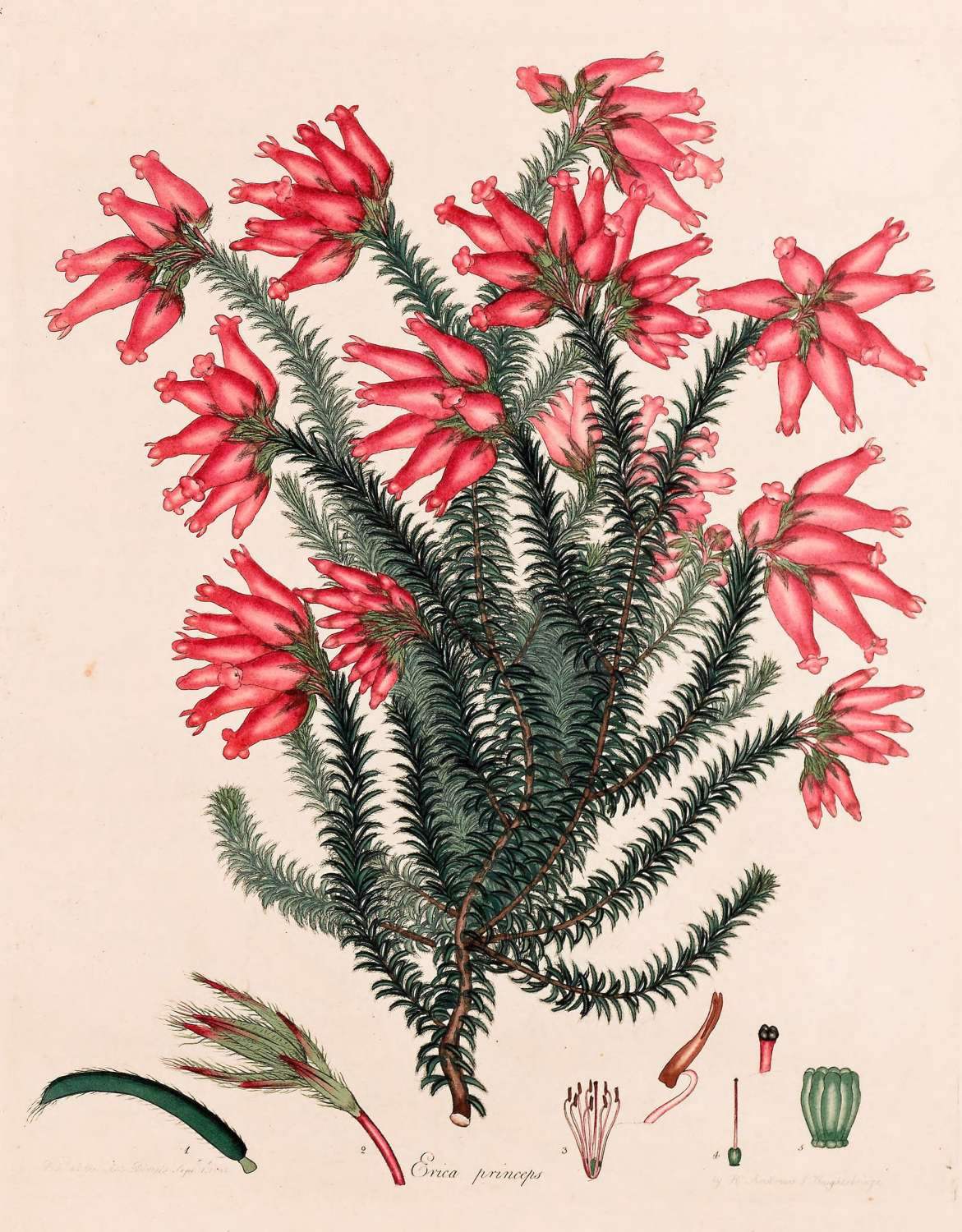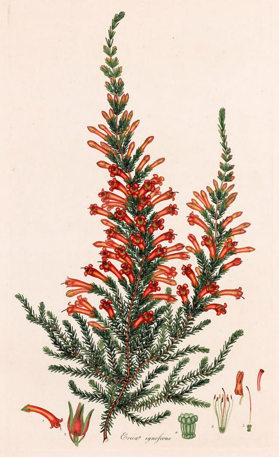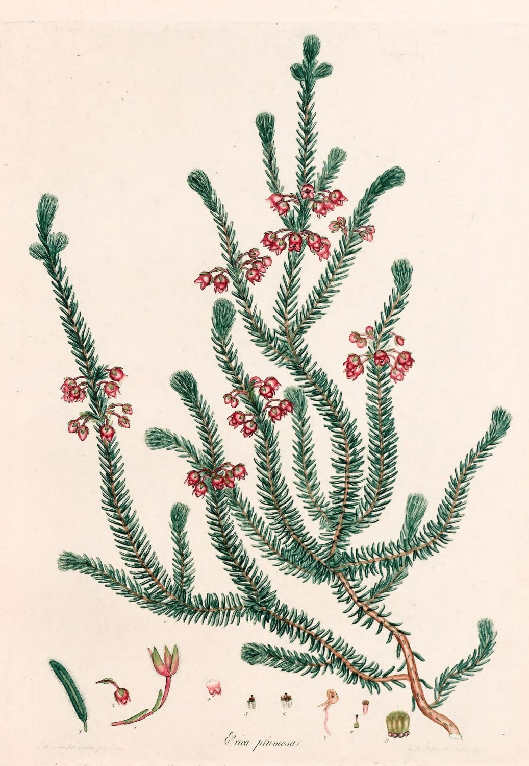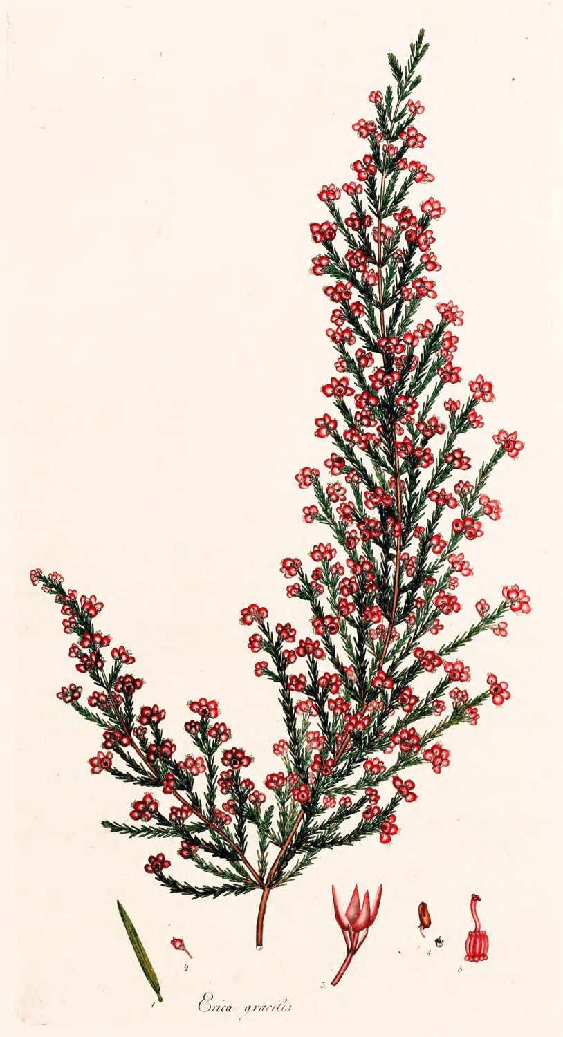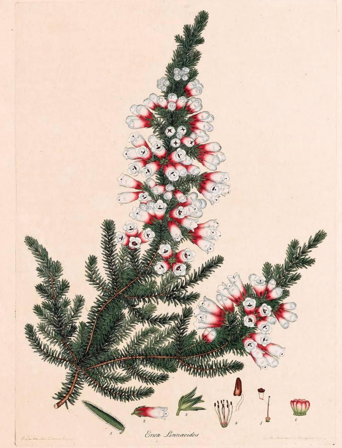 THE unabating ardour that still prevails in the science of botany, and rather increases than diminishes, renders it almost impossible (from the extreme minutiæ annexed to this elegant tribe) for the pencil of the artist to keep pace with the numerous importations from the Cape (at present the sole emporium of the genus Erica); the limits of the genus it is impossible at present to prescribe, but by the termination of the next volume we have no doubt of being able to ascertain, in some measure, its extent. The author’s intention is therefore to figure (first) all the most elegant and desirable of the genus, including many very beautiful varieties, of recent introduction, that far surpass those from which they derive their name; reserving, as a dernier ressort, the most uninteresting and least attractive, to subjoin at the termination of the genus, as necessary links in the chain of this extensive family. The great difficulty attending the cultivation of many of the species, so generally complained of, can only be surmounted by great care and attention to keep them from the partial damps and fogs so prevalent in this island. Among the most tender and difficult to preserve, and which require the most care, are the E. obbata, E. retorta, E. ampullacea, E. Aitonia, E. Jasminiflora, E. vestita alba, and E. Massonia; the last of which is perhaps the most tender, owing most likely to the closeness of the leaves, joined with the soft hairs that surround them, which is a great encourager of secreted damps: this, assisted by the great succulence that pervades the upper part of the plant, and its rather abrupt commencement from the wood, renders it so difficult to be preserved. They should by no means be intermixed with other plants, but kept in a house entirely appropriated to them, and so arranged that the air may have as free an egress and regress as possible to them all; as undoubtedly the mixing of them with plants whose foliage is so much larger, although it may produce a pleasing contrast, must exclude the free approach of the atmosphere, to which they are so much exposed in their native clime, and to which the nearest approximation [Pg 8][Pg 7][Pg 6]must certainly be most congenial.