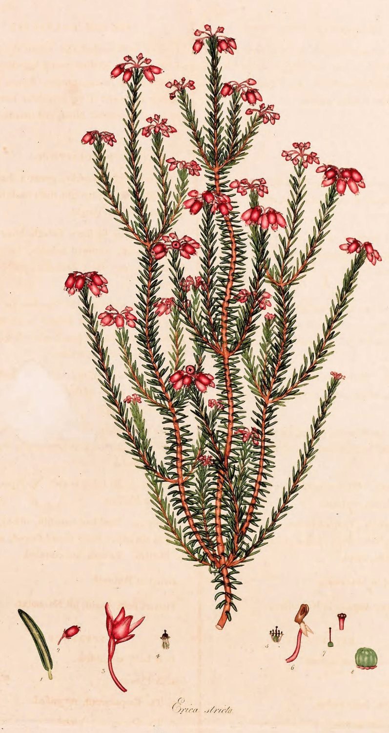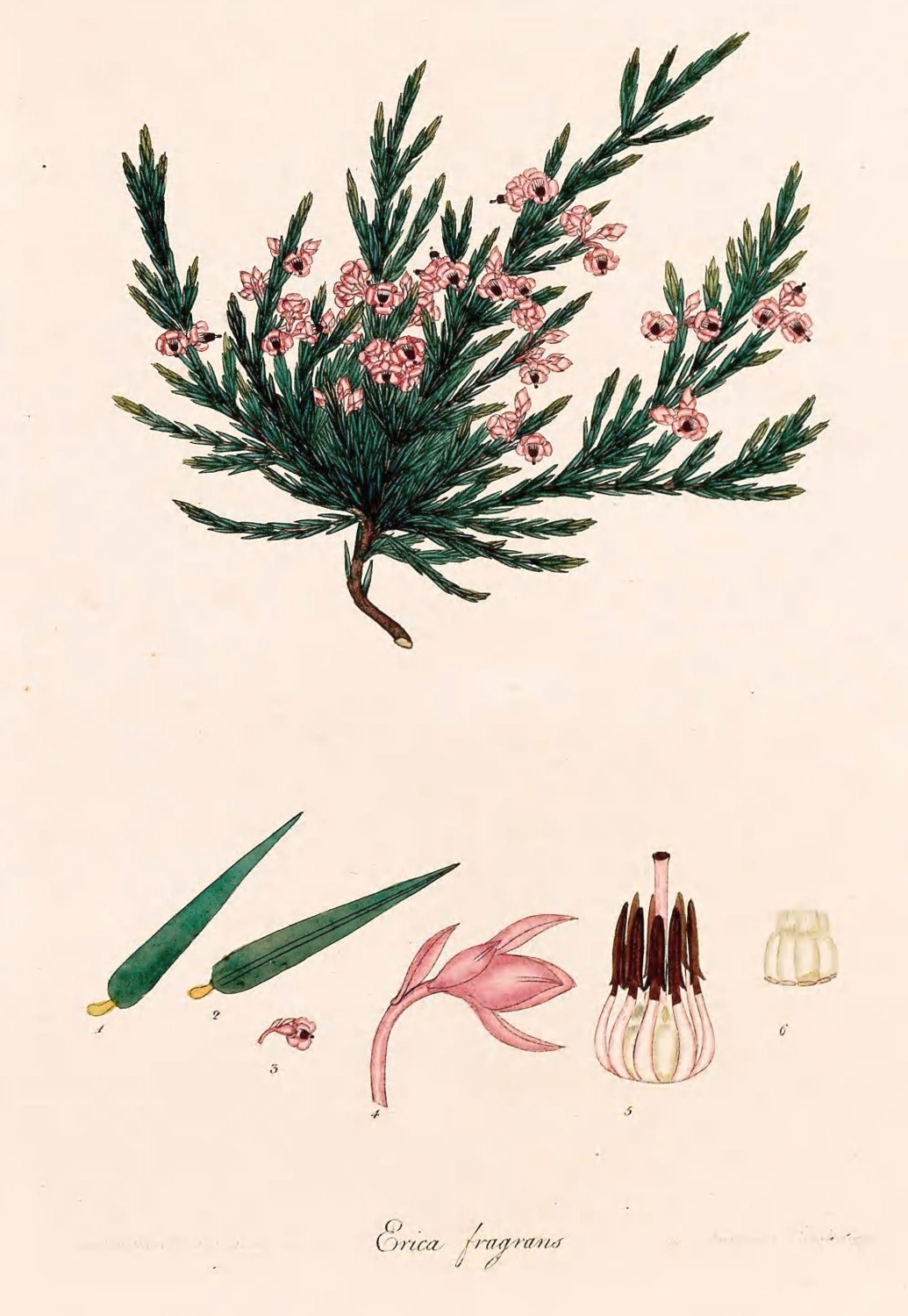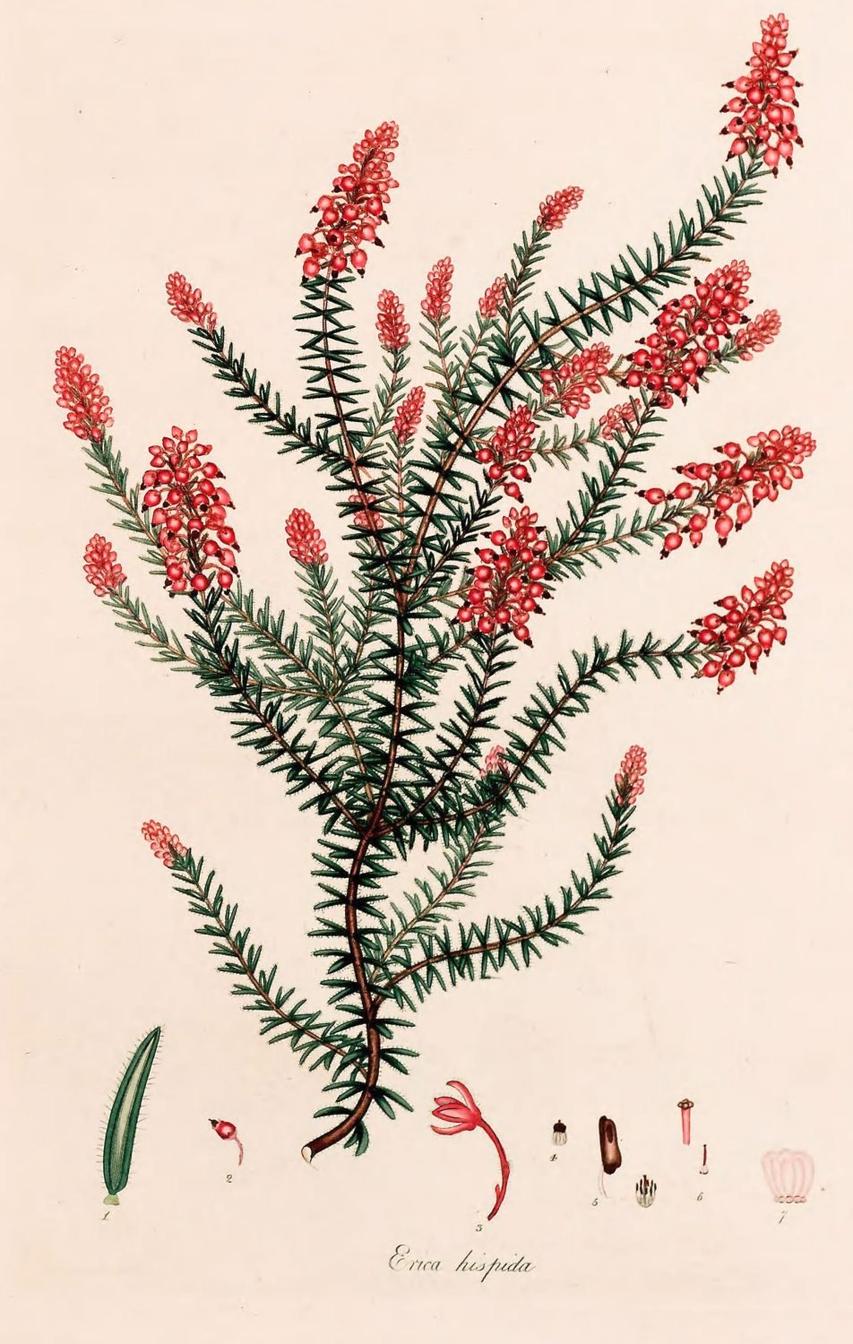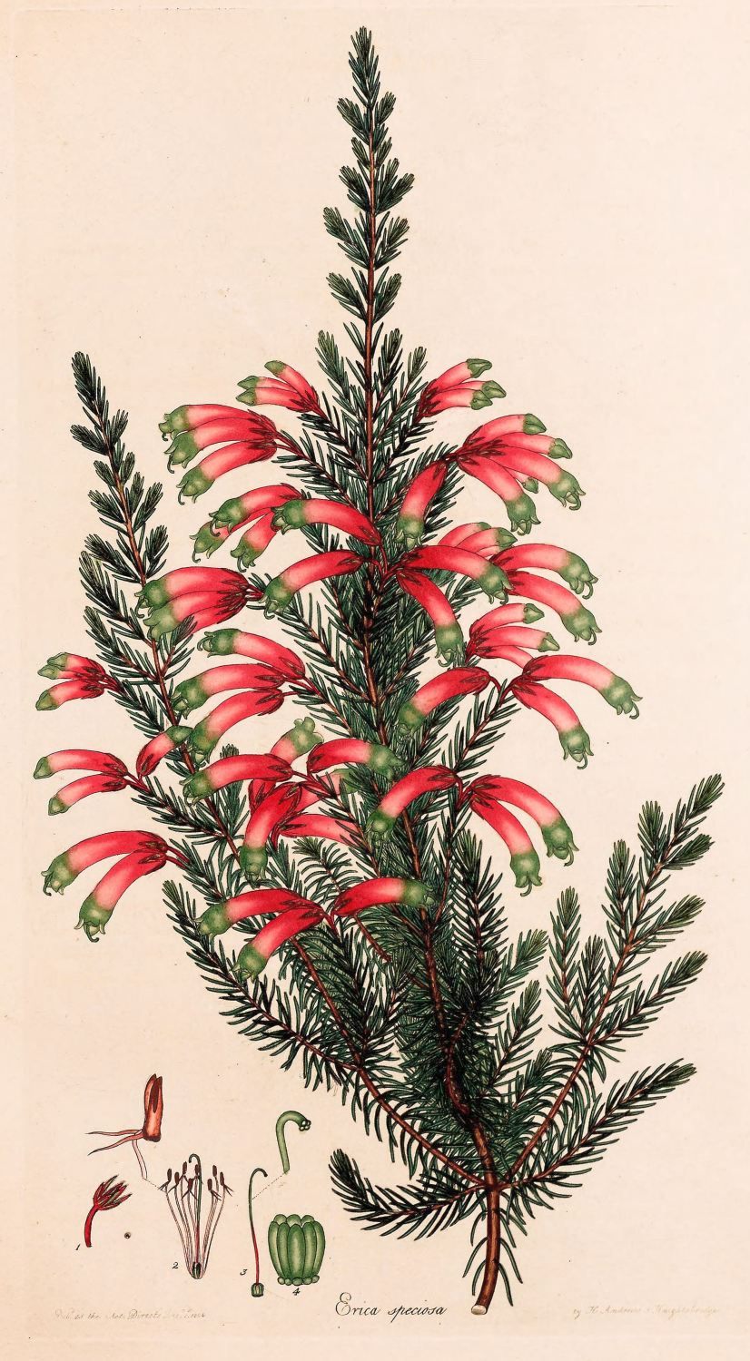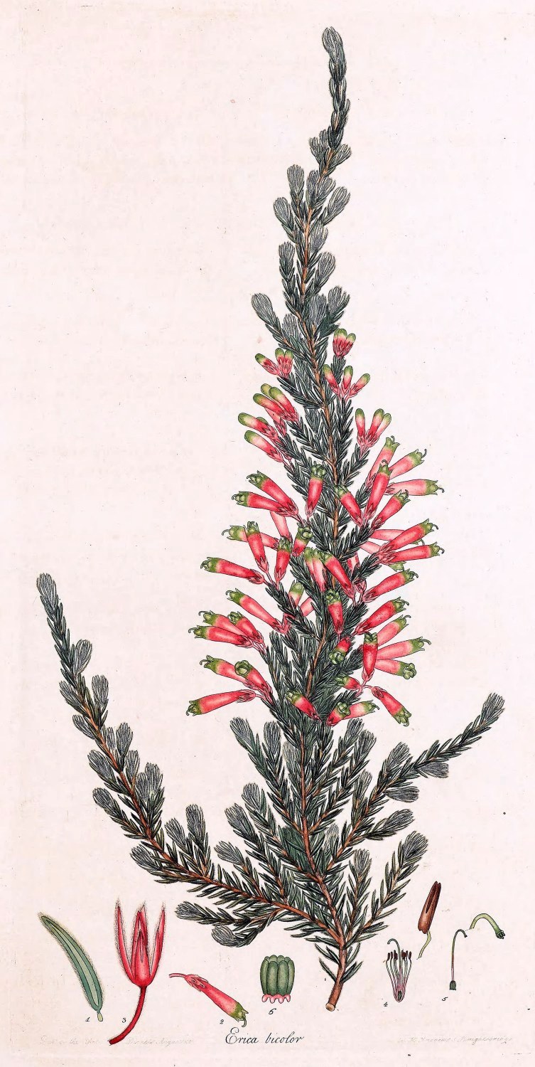 THE unabating ardour that still prevails in the science of botany, and rather increases than diminishes, renders it almost impossible (from the extreme minutiæ annexed to this elegant tribe) for the pencil of the artist to keep pace with the numerous importations from the Cape (at present the sole emporium of the genus Erica); the limits of the genus it is impossible at present to prescribe, but by the termination of the next volume we have no doubt of being able to ascertain, in some measure, its extent. The author’s intention is therefore to figure (first) all the most elegant and desirable of the genus, including many very beautiful varieties, of recent introduction, that far surpass those from which they derive their name; reserving, as a dernier ressort, the most uninteresting and least attractive, to subjoin at the termination of the genus, as necessary links in the chain of this extensive family. The great difficulty attending the cultivation of many of the species, so generally complained of, can only be surmounted by great care and attention to keep them from the partial damps and fogs so prevalent in this island. Among the most tender and difficult to preserve, and which require the most care, are the E. obbata, E. retorta, E. ampullacea, E. Aitonia, E. Jasminiflora, E. vestita alba, and E. Massonia; the last of which is perhaps the most tender, owing most likely to the closeness of the leaves, joined with the soft hairs that surround them, which is a great encourager of secreted damps: this, assisted by the great succulence that pervades the upper part of the plant, and its rather abrupt commencement from the wood, renders it so difficult to be preserved. They should by no means be intermixed with other plants, but kept in a house entirely appropriated to them, and so arranged that the air may have as free an egress and regress as possible to them all; as undoubtedly the mixing of them with plants whose foliage is so much larger, although it may produce a pleasing contrast, must exclude the free approach of the atmosphere, to which they are so much exposed in their native clime, and to which the nearest approximation [Pg 8][Pg 7][Pg 6]must certainly be most congenial.