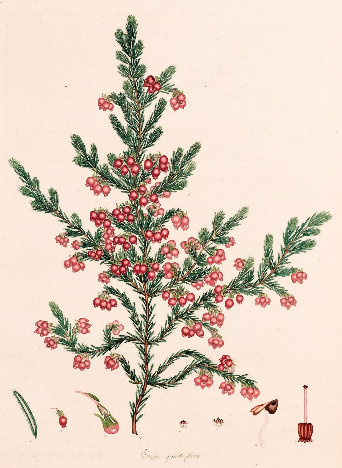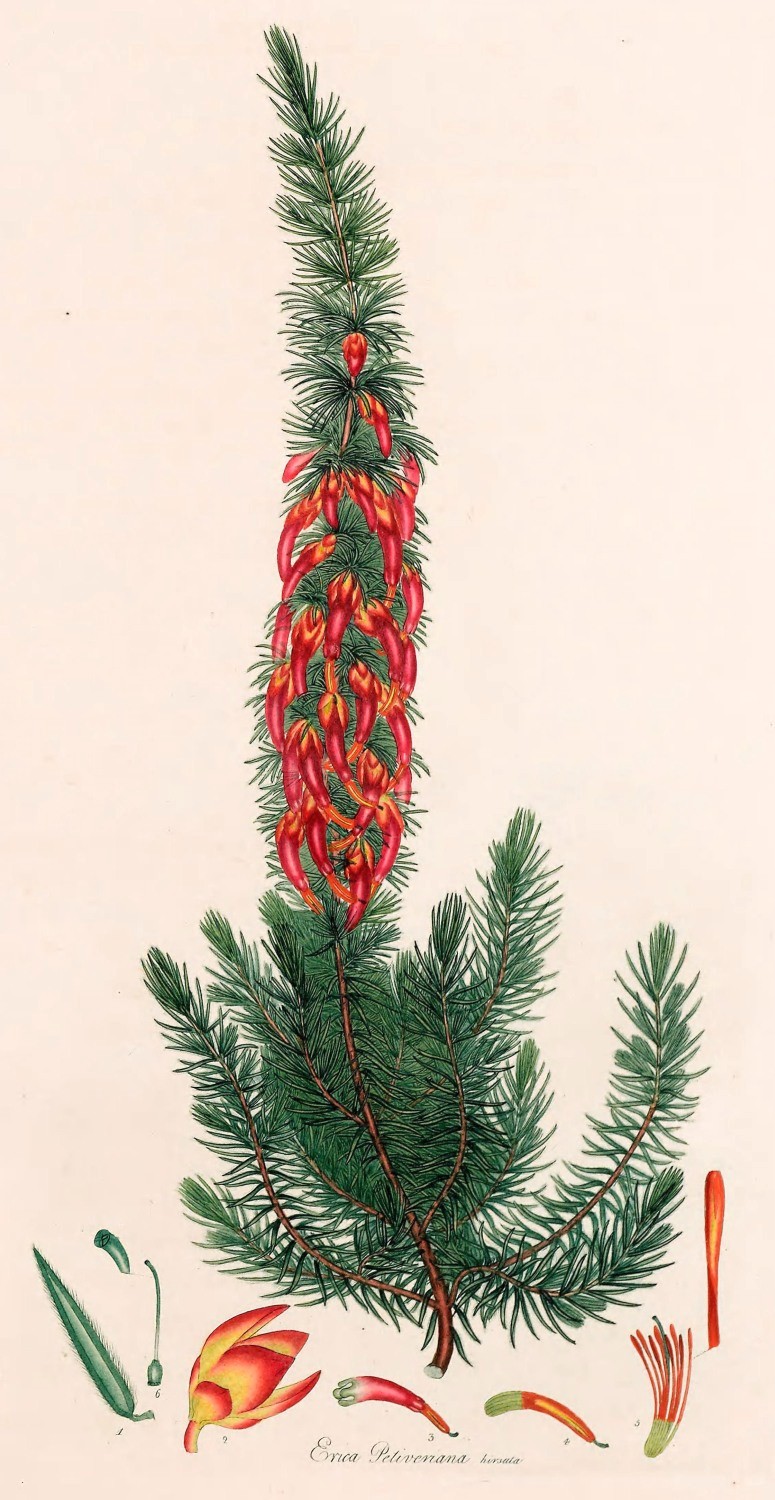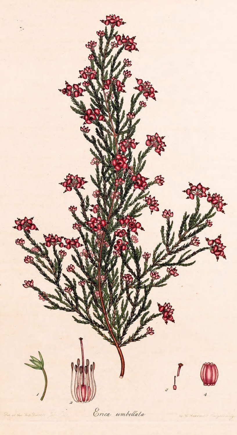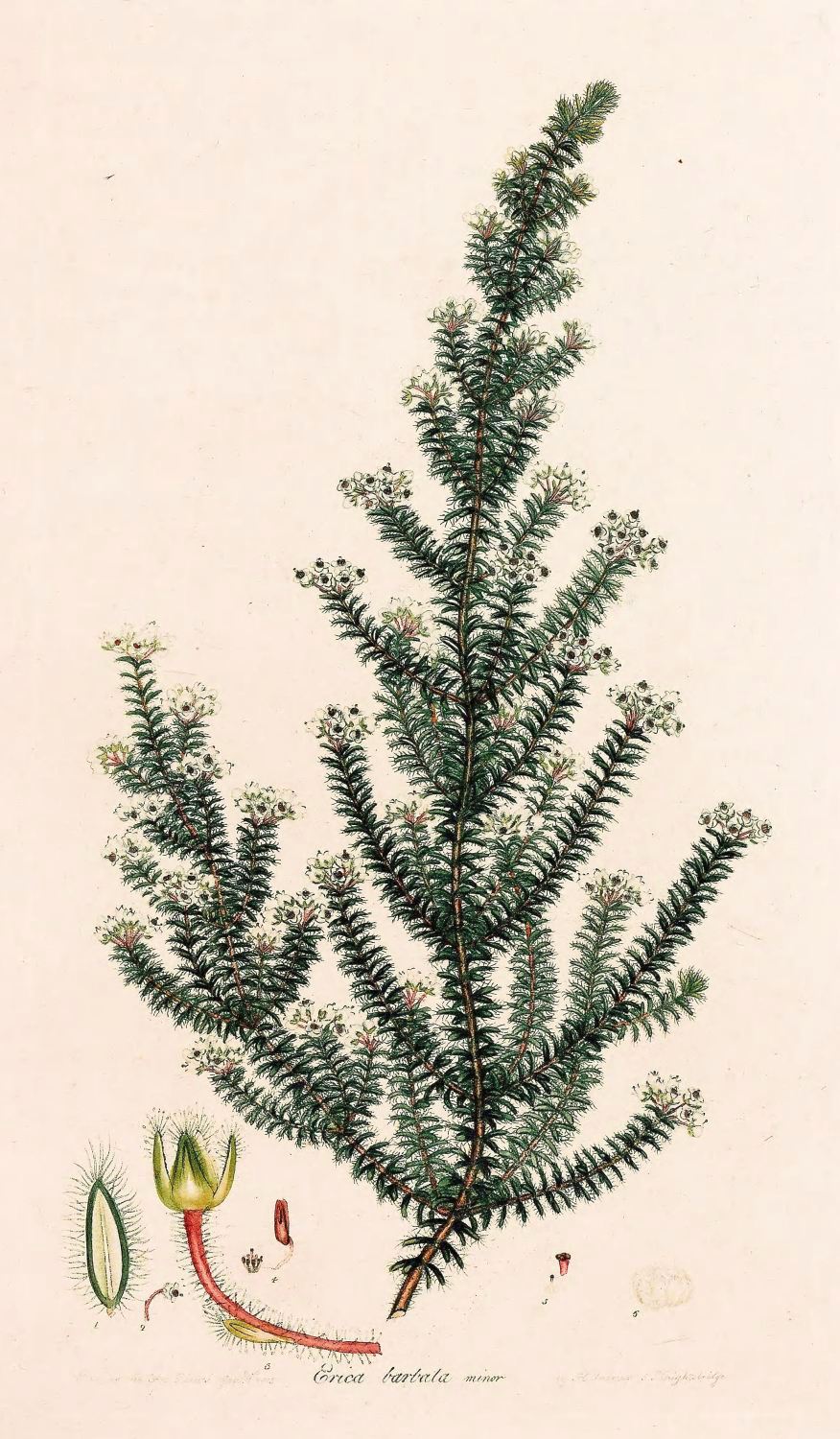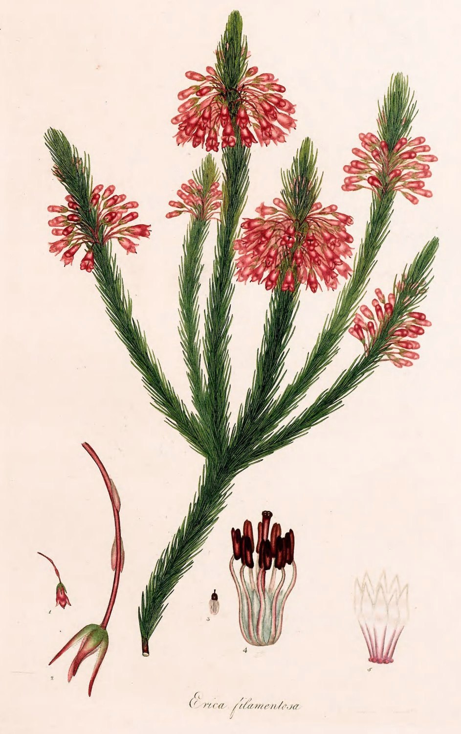 THE unabating ardour that still prevails in the science of botany, and rather increases than diminishes, renders it almost impossible (from the extreme minutiæ annexed to this elegant tribe) for the pencil of the artist to keep pace with the numerous importations from the Cape (at present the sole emporium of the genus Erica); the limits of the genus it is impossible at present to prescribe, but by the termination of the next volume we have no doubt of being able to ascertain, in some measure, its extent. The author’s intention is therefore to figure (first) all the most elegant and desirable of the genus, including many very beautiful varieties, of recent introduction, that far surpass those from which they derive their name; reserving, as a dernier ressort, the most uninteresting and least attractive, to subjoin at the termination of the genus, as necessary links in the chain of this extensive family. The great difficulty attending the cultivation of many of the species, so generally complained of, can only be surmounted by great care and attention to keep them from the partial damps and fogs so prevalent in this island. Among the most tender and difficult to preserve, and which require the most care, are the E. obbata, E. retorta, E. ampullacea, E. Aitonia, E. Jasminiflora, E. vestita alba, and E. Massonia; the last of which is perhaps the most tender, owing most likely to the closeness of the leaves, joined with the soft hairs that surround them, which is a great encourager of secreted damps: this, assisted by the great succulence that pervades the upper part of the plant, and its rather abrupt commencement from the wood, renders it so difficult to be preserved. They should by no means be intermixed with other plants, but kept in a house entirely appropriated to them, and so arranged that the air may have as free an egress and regress as possible to them all; as undoubtedly the mixing of them with plants whose foliage is so much larger, although it may produce a pleasing contrast, must exclude the free approach of the atmosphere, to which they are so much exposed in their native clime, and to which the nearest approximation [Pg 8][Pg 7][Pg 6]must certainly be most congenial.