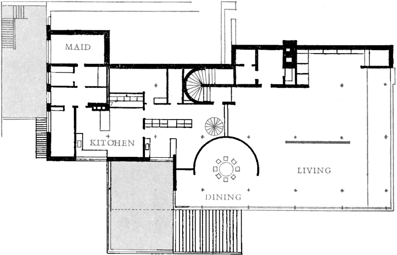| 50 | Ludwig Mies van der Rohe: Brno, Tugendhat house, 1930, plan (from Hitchcock, Modern Architecture, p. 127) | 376 |