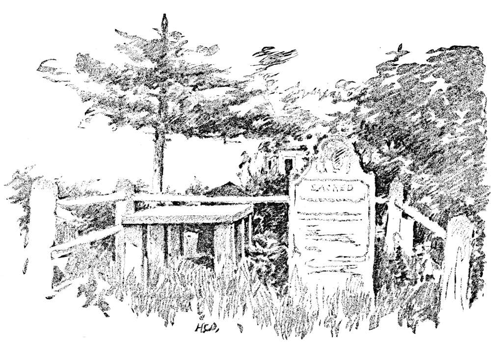 The hill was not used as a place of burial until after it was abandoned for defensive purposes. Those of the “Mayflower” company who died the first winter were buried on Cole’s Hill, and, while no traces of their graves remain, a tablet appropriately inscribed marks their resting-place. Others of the Pilgrim band found burial on their own estates, and no man knoweth their sepulchre. The first mention of Burial Hill as a cemetery was in 1698, when Chief Justice Sewall recorded the following in his diary: “I walk out in the morn to see the mill, then turn up to the graves, come down to the meeting-house, and seeing [Pg 13]the door partly open went in and found a very convenient place to pray.”