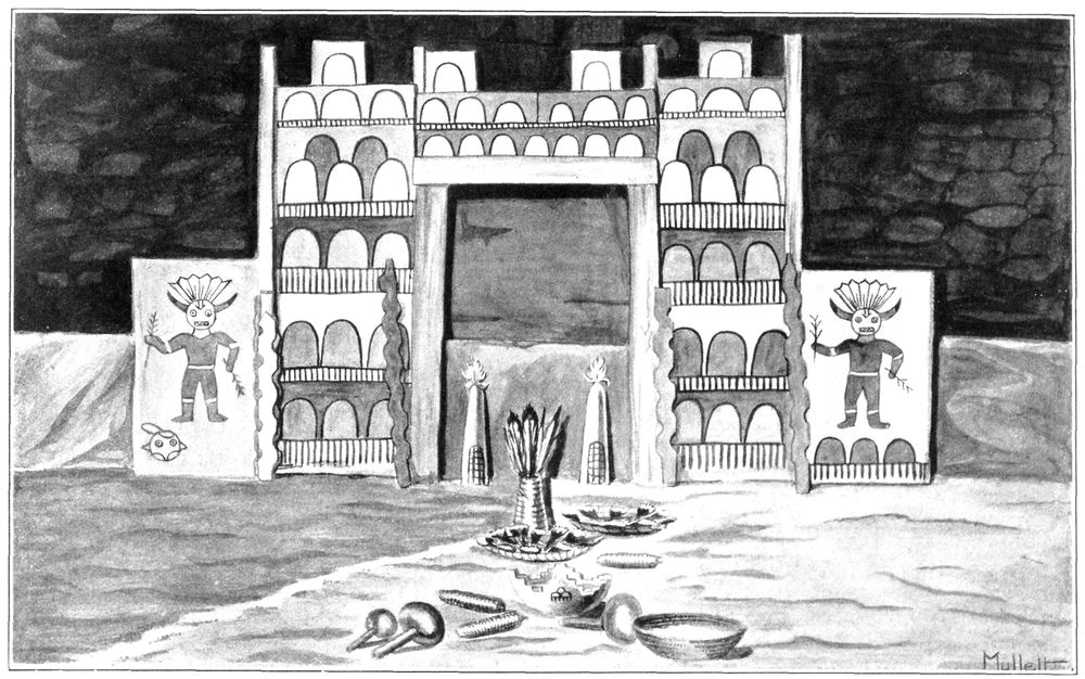 Our knowledge of Katcina altars of the Rio Grande in the other pueblos is very scanty, owing largely to the exclusion of ethnologists from the kivas. Katcina dances in the open plazas are repeatedly figured but the secret rites and accompanying altars, if any, are not known.