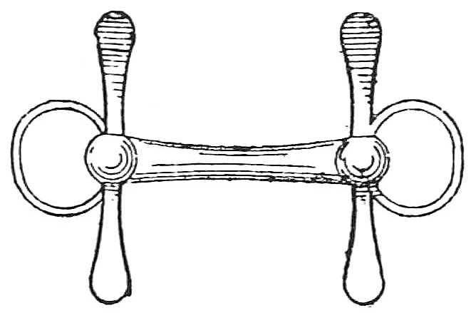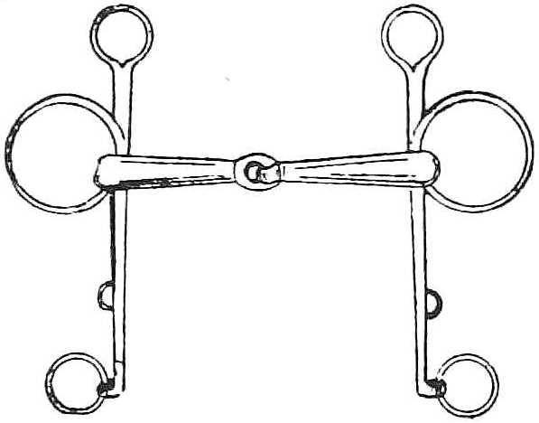 The loops having been damped before being attached, place a loop-stick ¾ in. wide in each loop; then knock them square and level to shape. Black them with soda and dye, dry partially with rag, and[Pg 139] rub and polish well with a bone, making them shine brightly. Now trim the underside of the cheek, round the square edges, and polish. Apply a coat of Harris’s harness liquid both to the loops and to the edges; rub them well with the palm of the hand and then with a little tallow, after which they must be again rubbed with a rag.