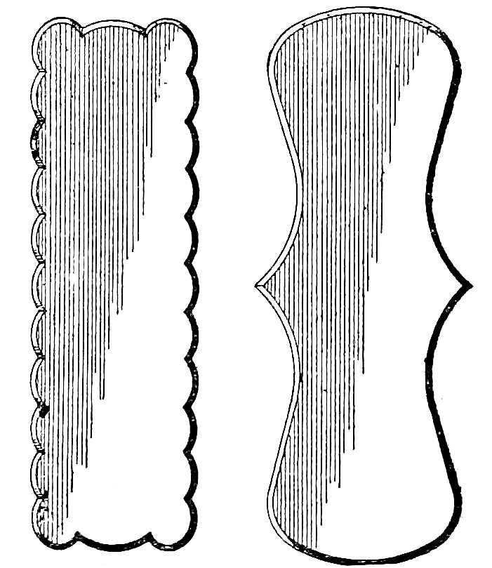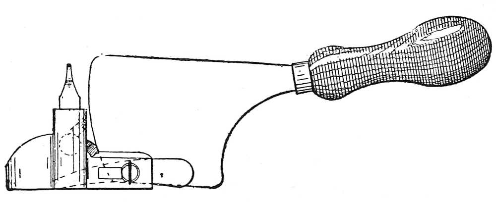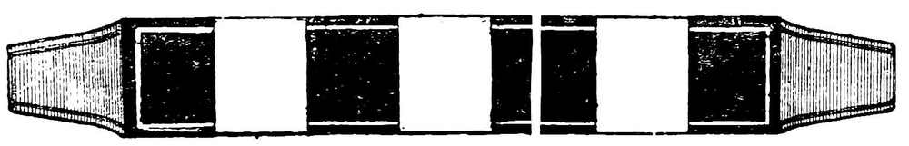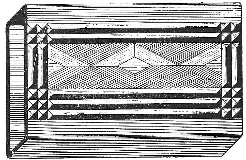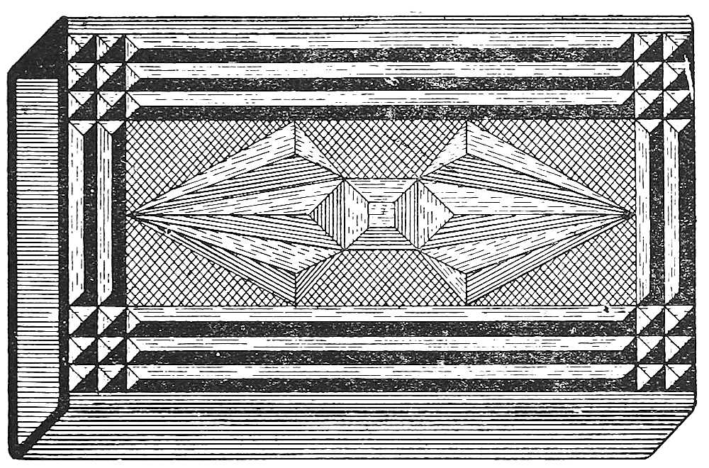 Now with the screw crease or compass make two or three lines across each end of the loop, and two rows near each other along the edges on the face. Trace out the design on the surface between the outer lines, namely diamonds, single arrow point, or double arrow points, etc. Having warmed the beveller, mark deeply the cross and outside lines, polish them, and then mark the outer lines of the design with the beveller on the surface of the loop.