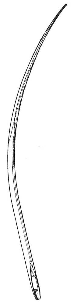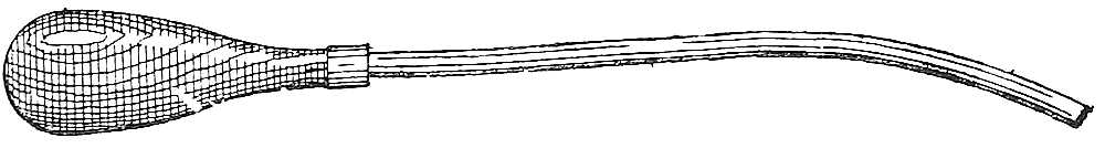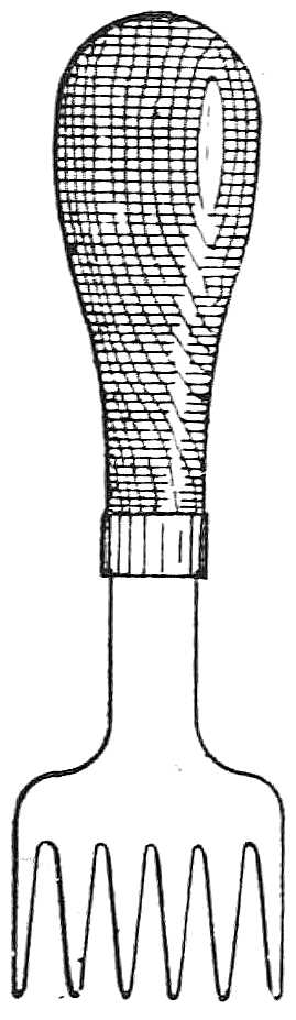 The dock (Fig. 188) that is placed under the tail is made of soft close-grained leather, 1 ft. 3 in. in length, and tapered from the centre on each side to about ⅞ in. when doubled over at the points. Groove it carefully along the edges at a slight distance therefrom, and stitch it loosely with three-cord fine hemp, about six per inch, merely pulling the stitches home; then damp it well.