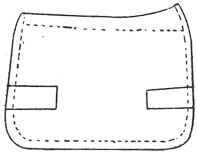 Four-wheel cab harness can be made in the same way as van harness, except the saddle (Fig. 192), which is made exactly like a gig saddle, but is heavier and has brass or nickel screw studs in each corner of the skirts; Fig. 193 shows the top or tree.