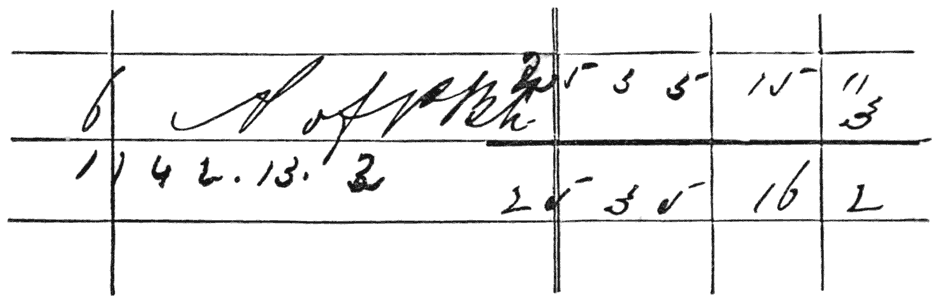 Secondly, I promised a first lesson in writing, of which, [13]therefore, (that we may see what is our present knowledge on the subject, and what farther we may safely ask Theuth8 to teach,) I have had engraved two examples, one of writing in the most authoritative manner, used for modern service, and the other of writing by a practised scribe of the fourteenth century. To make the comparison fair, we must take the religious, and therefore most careful, scripture of both dates; so, for example of modern sacred scripture, I take the casting up of a column in my banker’s book; and for the ancient, a letter A, with a few following words, out of a Greek Psalter, which [14]is of admirable and characteristic, but not (by any honest copyist,) inimitable execution.