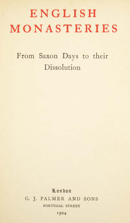 It has been suggested that it would be helpful to students to give a list of authorities on which these pages are based. A large number of authorities, such as monastic chartularies and customaries, and episcopal registers, only exist in manuscript; but the following are some of the principal printed books, in addition to the extended edition in eight vols. of Dugdale’s Monasticon: