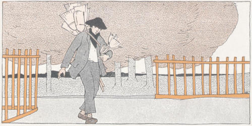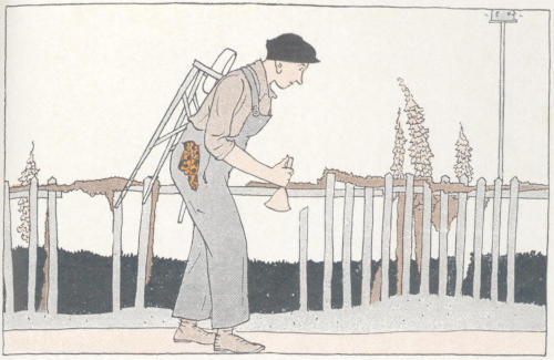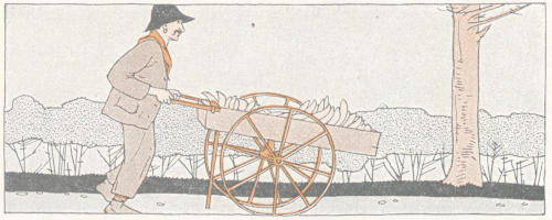 Original poems by children. In preparing the lessons it was not difficult to find rimes and jingles of the old trades and[194] tradesmen, but nothing could be found in folklore on the newer occupations such as those of the iceman, laundryman, grocer, garbage man, policeman, and newsboy. It did not seem well to present these occupations without some appropriate rime, so an appeal was made to children of primary grades to assist the author by making rimes. Among those sent in by their teachers six were selected, credit being given in each case to the grade and school. Although the teachers are not named, they are not forgotten.