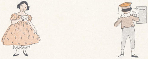 The riddles may be learned. The answers are given, for children of the first grade rarely guess riddles. They love them, however, and delight in repeating them for others to guess.