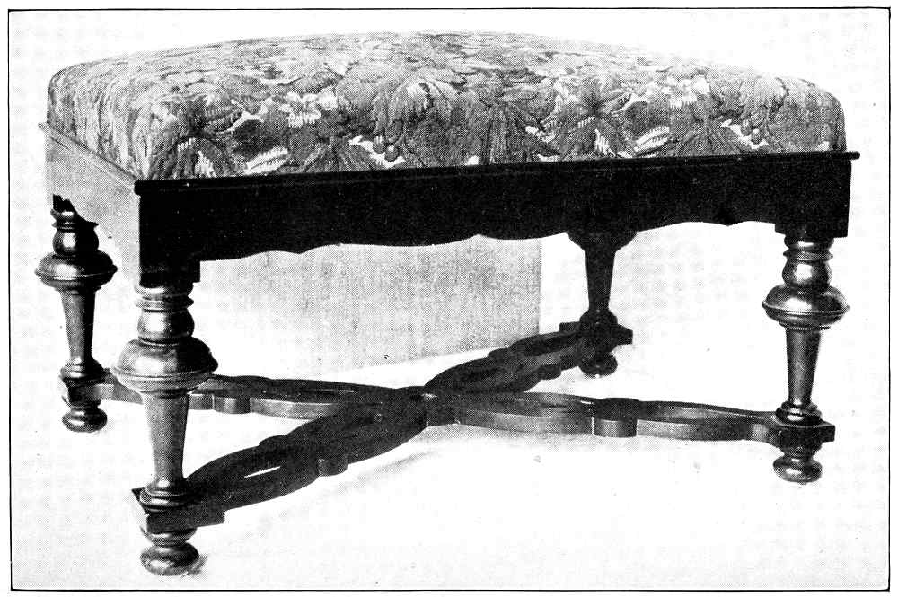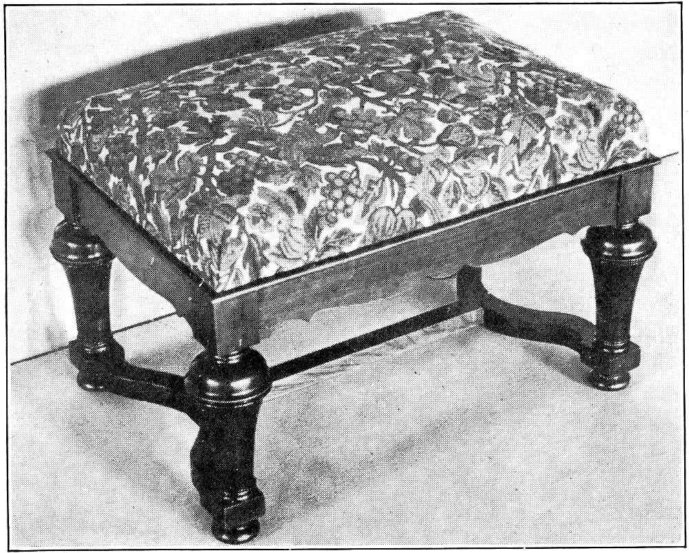 A QUEEN ANNE STOOL WHICH ILLUSTRATES A HARD-EDGE SEAT, SEE CHAPTER VI.