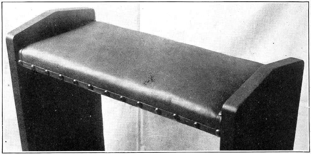 MATERIALS.—Webbing is our first consideration in the matter of materials. The two best kinds are L. M. C. and B. F. M. The former has a closer weave and is of better quality than the latter. It will withstand great strain before its elasticity gives out. It[Pg 12] is good policy to purchase the better grade inasmuch as it costs but 30 cents more for a 72-yard piece. L. M. C. comes in two widths, 3½ inch and 4½ inch, with the former width in more general use. The 3½ inch variety may be purchased for about $1.65 per 72-yard roll.