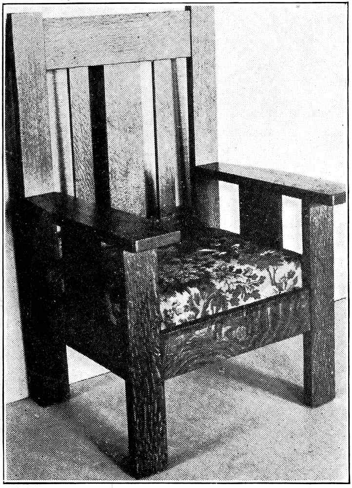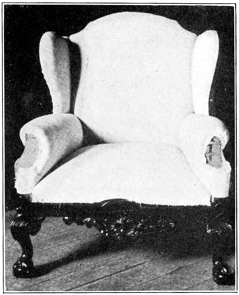 Not only does upholstery add comfort to furniture, but it reflects the conditions in the life of a people. Alice F. Schmall said recently: “With the accession of James I to the throne of England the style of dress changed to trunk hose and padded doublet, and the carven forms of furniture gave place to upholstery. There is a sense of dignity and refinement about a really fine chair; and the modern upholstered chair, which Chippendale developed, shows that our ancestors were fully alive to its advantages in the way of comfort.”