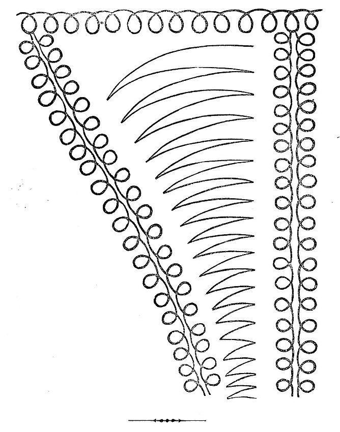 THIS is a novel and peculiarly dressy-looking garment, the distinctive features being a closed square front (which is confined by a bow of a rare fancy ribbon), and in the character of the flounce: this is gathered or fulled in divisions, giving it the appearance somewhat of a series of festoons. The separate compartments are strongly pronounced by transverse bands of black velvet and narrow black lace; a similar trimming of which outlines the whole scarf, and, with the piquant air of the garment, renders it an exceedingly beautiful production. The color may be made to taste. Those of lavender glacé silks, the drabs, and of black taffeta, especially are very beautiful.
