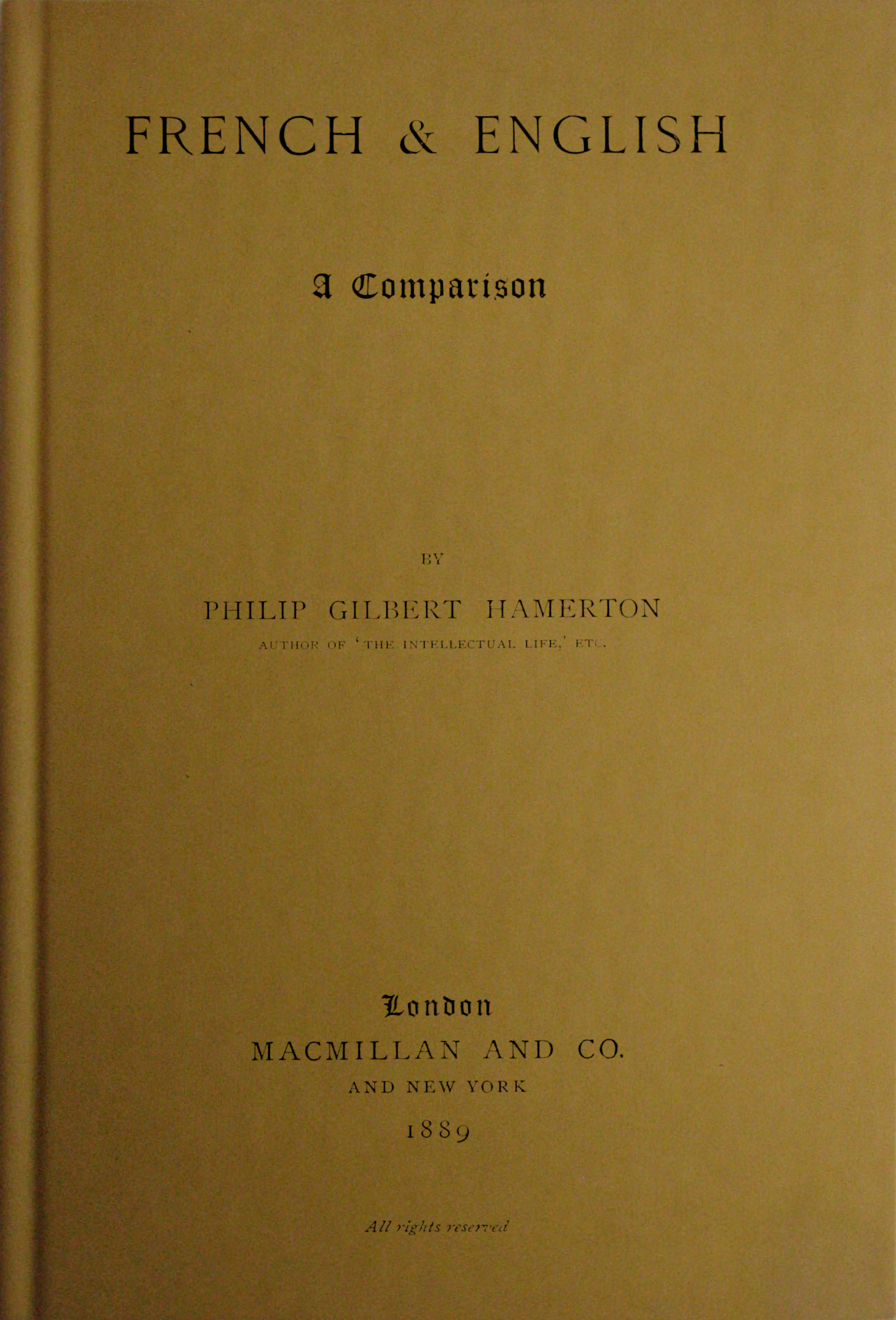 It may be taken as typical of the author’s intentions that he has felt uncertain which of the two nationalities he would put first in the title, and that the question has been decided by a mere consideration of euphony. If the reader cares to try the experiment of saying “English and French,” and “French and English” afterwards, he will find that the latter glides the more glibly from the tongue. There is a tonic accent at the beginning of the word “English” and a dying away at the end of it which are very convenient in the last word of a title. “French,” on the other hand, comes to a dead stop, in a manner too abrupt to be agreeable.