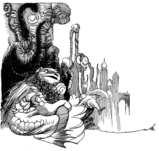 Then he began once more the writing of books, which he had left off when dreams first failed him. But here, too, was there no satisfaction or fulfilment; for the touch of earth was upon his mind, and he could not think of lovely things as he had done of yore. Ironic humor dragged down all the twilight minarets he reared, and the earthy fear of improbability blasted all the delicate and amazing flowers in his faery gardens. The convention of assumed piety spilt mawkishness on his characters, while the myth of an important reality and significant human events and emotions debased all his high fantasy into thin-veiled allegory and cheap social satire. His new novels were successful as his old ones had never been; and because he knew how empty they must be to please an empty herd, he burned them and ceased his writing. They were very graceful novels, in which he urbanely laughed at the dreams he lightly sketched; but he saw that their sophistication had sapped all their life away.