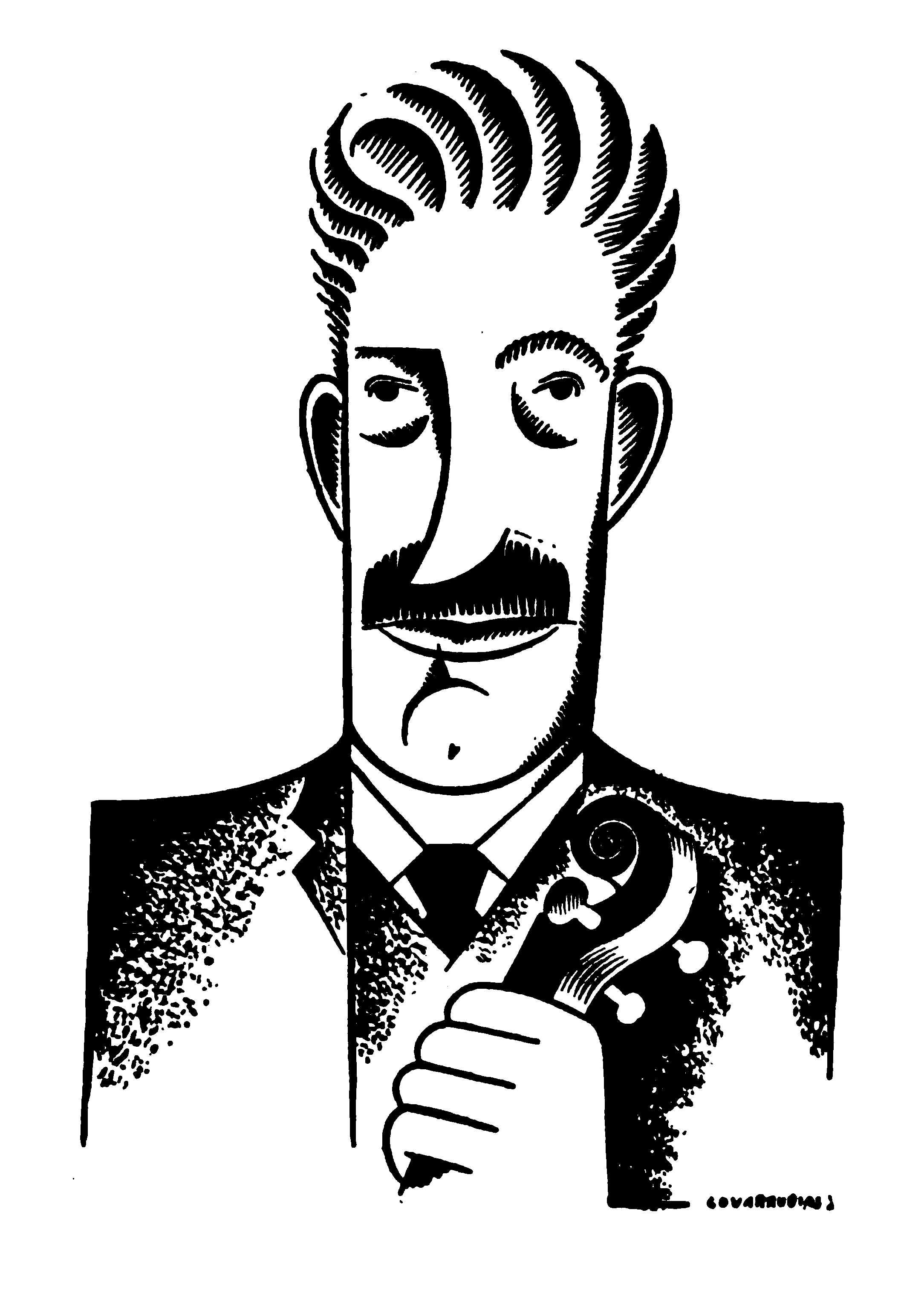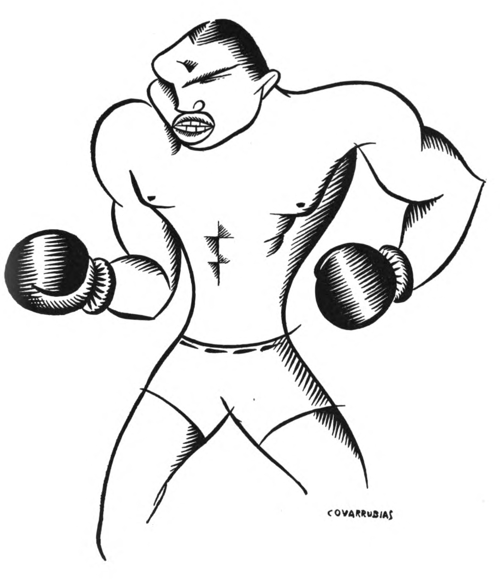 From the beginning I was amazed at his ability to size up a person on a blank sheet of paper at once: there was a certain clairvoyance in this. I had believed, hitherto, that it was necessary for a caricaturist to study his subject for some time before he touched pen to paper. Covarrubias, at least so far as his own work was concerned, effectively demolished this belief. Speaking English imperfectly, a newcomer to this country, frequently he was actually ignorant as to whether his model was actor, painter, or author. In spite of this handicap, or because of it, his caricatures almost invariably go deeply behind the mere sculptural formation of the face. They are often a complete criticism of a personality. Moreover, the artist does not depend on ridiculous collocations of figures or witty captions, in the manner of Max Beerbohm, for his effects. His arrangement of the lines of the face alone tells the story, occasionally, it must be admitted, a cruel story. There is, of course, a sequel to this history of our first encounter a little more than a year ago. At the present moment, Miguel Covarrubias is about as well known in New York as it would be possible for any one to be. In fact, when I desire to meet any celebrated person nowadays, my instinct suggests at once that Covarrubias is the man who can most easily manage the introduction. On the whole, therefore, I fancy it would be more appropriate for him to draw a frontispiece for a book of mine than for me to furnish this poor preface for this brilliant book of his. I think, in compensation, I'll ask him to do it!