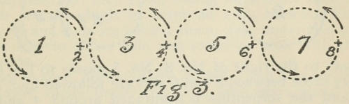 Precision of movement is the keynote of success for everything of this kind. This does not mean stiffness, but it does mean exactitude and certainty. Uncertain gestures in speaking; scattered attack and close in singing; hesitation in acting; and, more than all, careless motions and marching in the drills (corners not formed squarely, motions only half in unison, etc.)—all these are fatal to that success which makes such entertainments entertaining.
