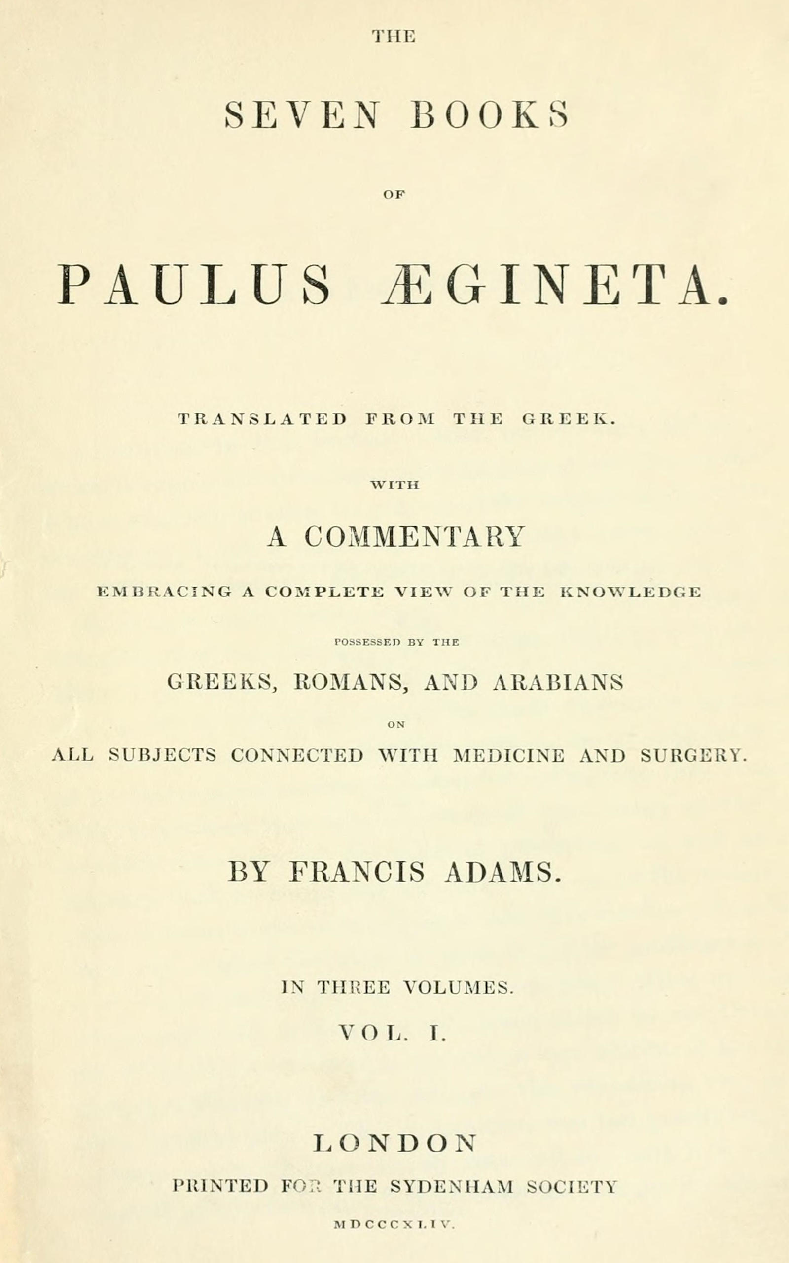 Title: The seven books of Paulus Ægineta, volume 1 (of 3)