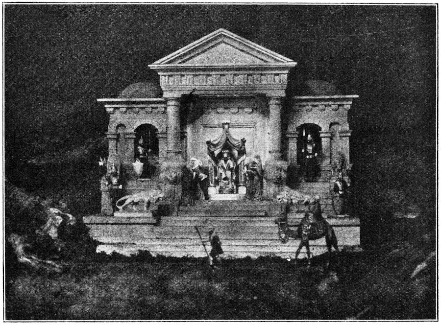 Betrachtet man dann die Einzelheiten, die ruhenden Kamele der Weisen aus dem Morgenlande, die Hirten auf dem Felde, die weidenden Schafe und die kletternden Ziegen, die wundervoll sprechende Gebärde der Maria in der Tempelszene, die farbige Schönheit der Palastgruppe, so findet man immer von neuem entzückende Feinheiten, und je öfter man vor den Weihnachtsberg tritt, desto mehr liebt man das Werk.