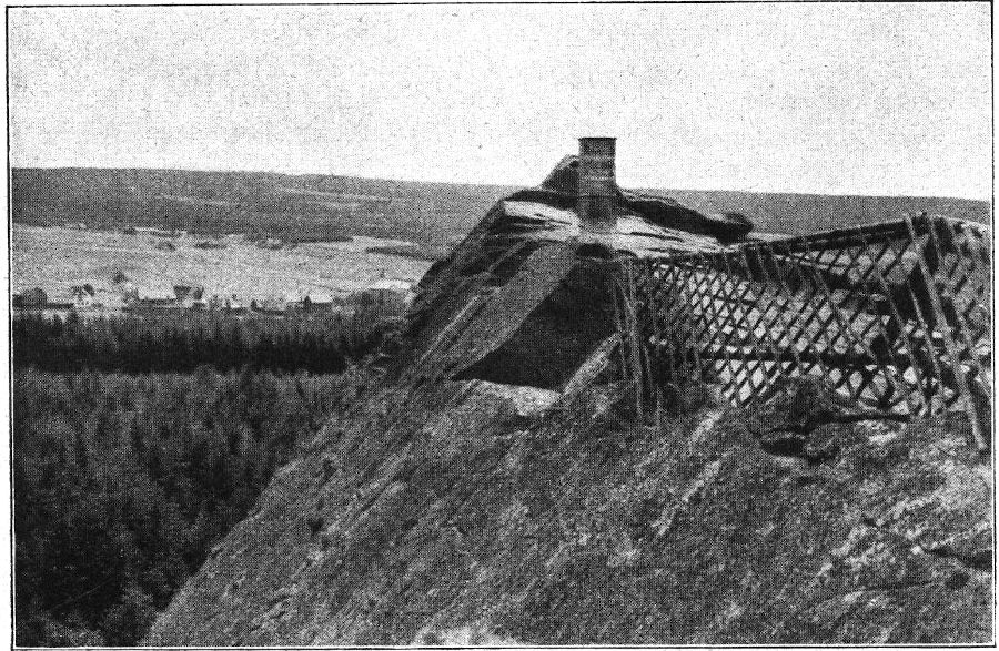 Die zackigen Felsmassen, die nach Südosten in steiler Wandung abfallen, bringen eine seltsam eigenwillige Note in das ruhige Gleichmaß des vogtländischen Landschaftsbildes: kühn und herrisch streben sie aus dem stumpfen, breiten Rücken der welligen Hochfläche empor, Zeugen aus der überaus bewegten erdgeschichtlichen Vergangenheit der Heimat, da die harten Quarzite und Quarzitschiefer allen Unbilden der Verwitterung trotzig standhielten, während das weichere Gestein, dem sie eingelagert sind, ringsum zerstört und zu Tal gespült wurde. Seltsam scharfkantig, zerrissen und zerklüftet, vom Wetter zu Gebilden gestaltet, die der Deutkraft vergangener Geschlechter freien Raum ließen (Wendelstein, Katzenstein), in längeren oder kürzeren Zwischenräumen aus dem Erdreich auftauchend wie Klippen aus der wogenden Brandung, Mauerreste verfallener Riesenburgen, so erscheinen die Felsen[141] dem Auge des Wanderers aus der Ferne. In unmittelbarer Nähe verstärkt sich der Eindruck des Unruhig-Zerrissenen, Trümmerhaften; zu den Füßen des Felskammes liegen abgerollte Blöcke im Beerengestrüpp und Moospolster, und wie vernarbte Wunden im Antlitz des ruhmvollen Kämpfers zucken Quarzadern durchs schiefrige Grundgestein.