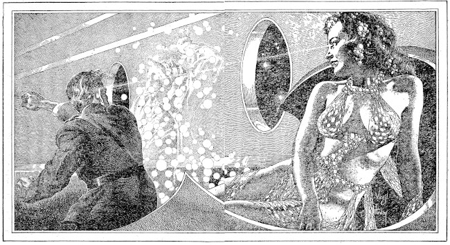 "We saved you from the police," she said. Her body moved softly under skin-tight resensilk. She had used her voice, but I felt her thoughts. I knew she didn't have to use her lips to tell me anything. It was a funny feeling. "You're on a space-cruiser. We'll be in a La Guardia field cradle in five hours."