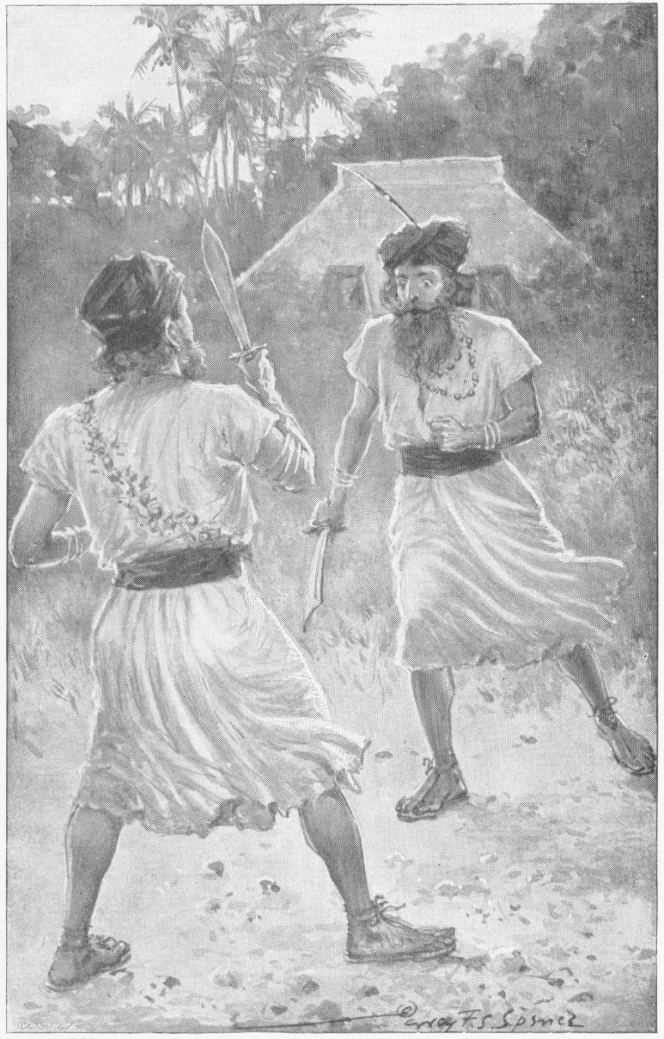 Presently we approached what appeared to be the largest of the houses in the town, if such a scattered lot of houses could be{38} called a town. There seemed to be a good deal of bustle going on, and when we arrived close the crowd parted and a fine-looking man came forward, dressed but little better than the rest, with the exception that his turban was bright red whilst all the others wore white.