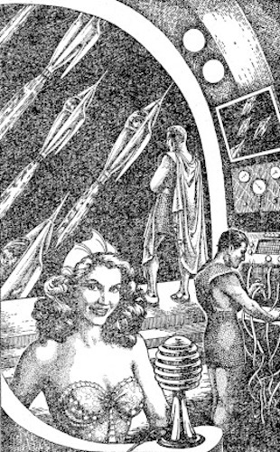 The fleet divided. Rescue craft darted around the spaceliner and picked up tracers left by fleeing life-craft; they followed these to give aid to crew and passengers fleeing the imminent blowup.