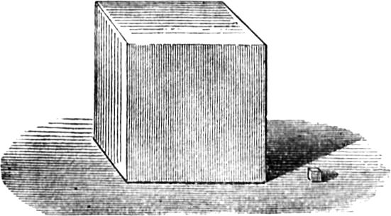 Die Kohle ist ein fester Körper, dessen Festigkeit durch Hitze allein nicht aufgehoben werden kann; aber beim Verbrennen geht sie in ein Gas über, welches sich unter gewöhnlichen Umständen nicht zu einem festen oder flüssigen Körper verdichten läßt. Und noch wunderbarer mag der Umstand erscheinen, daß durch diese Aufnahme der Kohle der Sauerstoff durchaus nichts an[170] seinem Rauminhalt ändert: er verwandelt sich in Kohlensäure, und diese nimmt genau denselben Raum ein, wie der Sauerstoff, welcher zu ihrer Bildung erforderlich war.