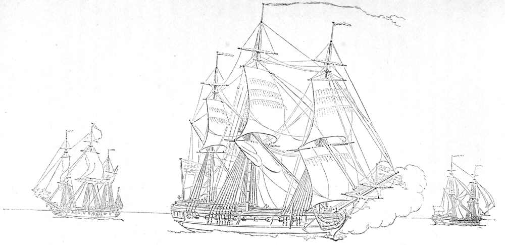 Beside these there were many small, unrated ships, such as gun-brigs, sloops, ketches, schooners, cutters, etc., and some foreign prizes so armed that they could not be rated by the English scale. It must be noted that our official rating reckoned only the regular armament—i.e. the guns of the regulation patterns. After 1779 our ships carried carronades in addition to their other guns, but these were never reckoned in the Admiralty ratings.