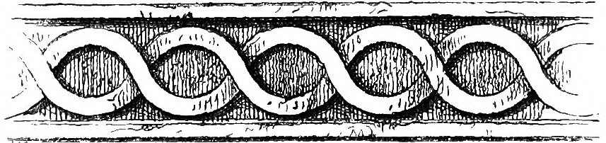 curved lines; but beyond these there was but little decorative sculpture. There is clearly a basement storey of very large[489] stones lying underneath the present ground level. Here and there the subsidence of the ground, or the falling in of the masonry, reveals passages and what appear to be small rooms or vaults, with solid, well constructed walls. In the short hour that circumstances permitted us to linger, it was impossible to do more than observe things as they stood. The mere removal of the loose stones would do a good deal, and a very little excavation would do much more, to indicate the history of the original structures, and we have little doubt that many inscribed stones might still be found that would help materially to the same end. On the north side of the western arch and façade is a sort of enclosure formed of loose stones piled together as a rude wall, and whitewashed. This wall has been reared by pilgrims, each of whom has carried and placed a stone, according to their custom, at what they regard as a “saint’s place.”’