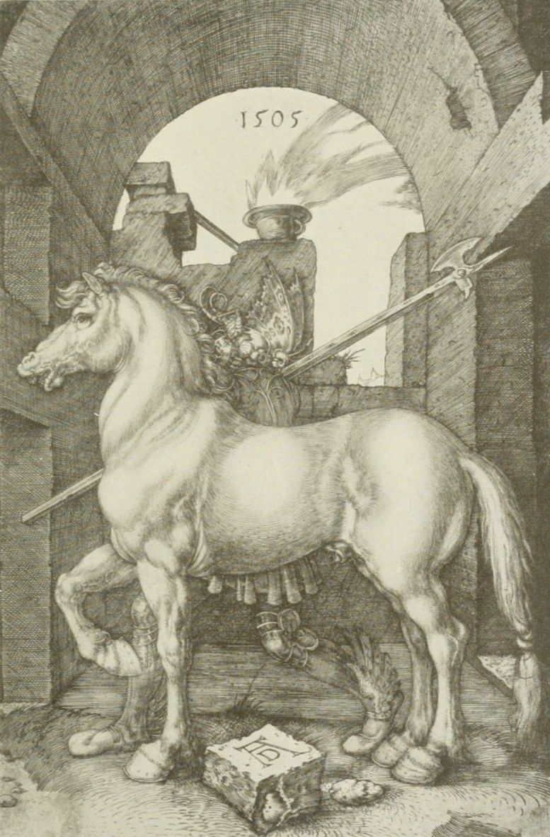It need scarcely be said that extreme rarity is a characteristic of the early Schools. The prints of two of the most masculine of the Italians, for instance, Andrea Mantegna and Jacopo de’ Barbarj, are not to be got by ordering them. They have, of course, to be watched for, and waited for, and the opportunity taken at the moment at which it arises. In some measure there will be experienced the same engaging and preventive difficulty in possessing yourself of the prints of the great Germans and of the one great Flemish master,[Pg 14] Lucas of Leyden. And if these, in certain states at least, in certain conditions, are not quite as hard to come upon as the works of those masters who have been mentioned just before them, and of their compatriots of the same period, that is but an extra inducement for the search, since there is, of course, a degree of difficulty that is actually discouraging—a sensible man does not long aim at the practically impossible. Now, in regard to the early Flemish master with whom Dürer himself not unwillingly—nay, very graciously—exchanged productions, there are yet no insuperable obstacles to the collector gathering together a representative array of his work; it is possible upon occasion even to add one or two of his scarce and beautiful and spirited ornaments to the group, such as it may be, of subjects based on scriptural or on classic themes. To be a specialist in Lucas van Leyden would be to be unusual, but not perhaps to be unwise; yet a greater sagacity would, no doubt, be manifested by concentration upon that which is upon the whole the finer work of Albert Dürer. Of late years, Martin Schöngauer too, with the delicacy of his burin, his tenderness of sentiment, and his scarcely less pronounced quaintness, has been a favourite, greatly sought for; but, amongst the Germans, the work that best upon the whole repays the trouble undertaken in amassing it, is that of the great Albert himself, and that of the best of the Little Masters.