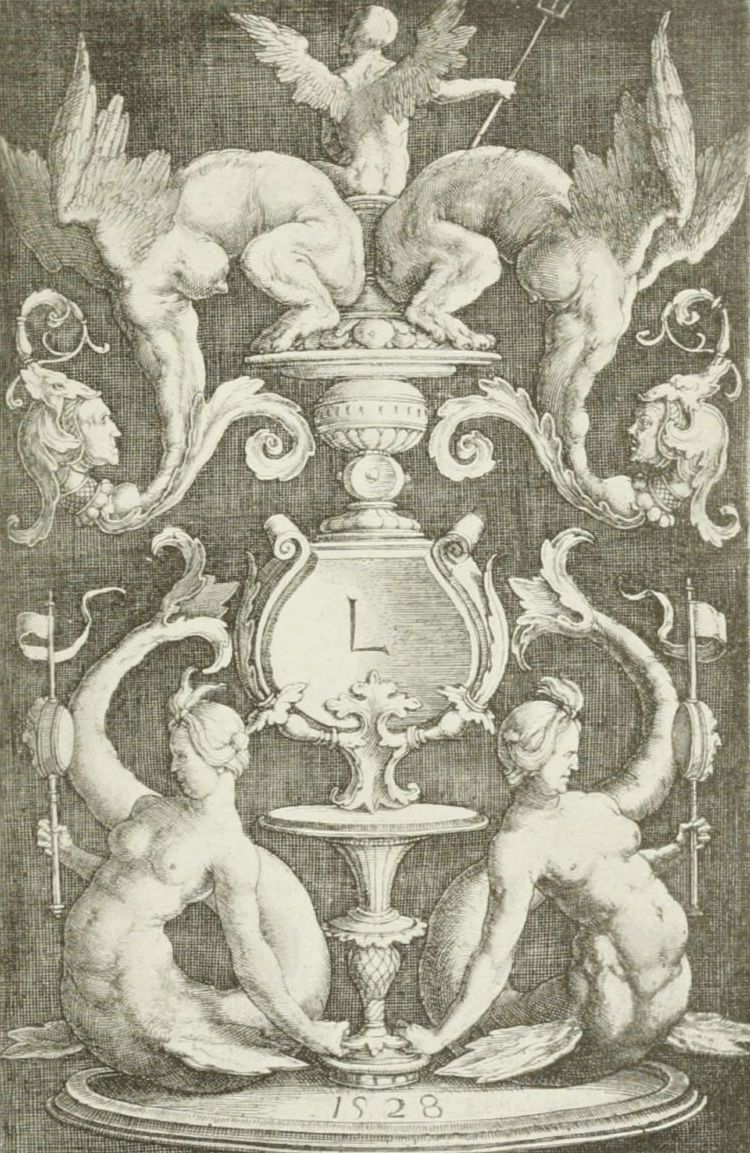 And who, then, were the Little Masters? a beginner wants to know. They were seven artists, some of them Dürer’s direct pupils, all of them his direct successors;[Pg 15] getting the name that is common to them not from any insignificance in their themes, but from the scale on which it pleased them to execute their always deliberate, always highly-wrought work. There is not one who has not about his labour some measure of individual interest, but the three greatest of the seven are the two brothers Beham—Barthel and Sebald—and that Prince of little ornamentists, Heinrich Aldegrever. Nowhere was the German Renaissance greater than in its ornament, and the Behams, along with subjects of Allegory, History, and Genre, addressed themselves not seldom to subjects of pure and self-contained design. Rich and fine in their fancy, their characteristic yet not too obvious symmetry has an attraction that lasts. Barthel was the less prolific of the twain, but perhaps the more vigorous in invention. Sebald, certainly not at a loss himself for motives for design, yet chose to fall back on occasion—as in the exquisite little print of the Adam and Eve—upon the inventions of his brother. There is not now, there never has been, very much collecting here in England of the German Little Masters. Three pounds or four suffices, now and again, to buy at Sotheby’s, or at a dealer’s, a good Beham, a good Aldegrever. In their own land they are rated a little more highly—are at least more eagerly sought for—but with research and pains (and remembering resolutely in this, as in every other case, to reject a bad impression), it is possible, for a most moderate sum, to have quite a substantial bevy of these treasures; and though large indeed in their design, their real art quality, they[Pg 16] are, in a material sense, as small almost as gems. Mr Loftie, who made a specialty of Sebald Behams, was able, I believe, to carry a collection of them safely housed in his waistcoat-pocket.