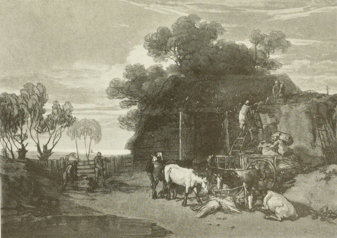 Liber Studiorum occupies an interesting and a peculiar position between work upon the copper wholly original and work wholly reproductive. Turner etched the leading lines himself. In several cases he completed, with his own hand, in mezzotint, the whole of the engraved picture; but generally he gave the “scraping” to a professional engraver, whose efforts he minutely supervised and most elaborately corrected. In recent years, almost as much, though not quite as much sought for as the Liber plates of Turner, are certain rather smaller mezzotints which record the art of Constable; but Constable himself did nothing on these plates, though he supervised their production by David Lucas. Turner’s connection with professional[Pg 21] engravers was not confined to the priceless and admirable prints of the Liber. He trained a school of line engravers, welcoming at first the assistance of John Pye and of George and William Cooke. These two brothers were the engravers mainly of his Southern Coast, and nothing has been more manly than that; but the work of William Miller, in the Clovelly of that Southern Coast, and in a subsequent series, interpreted with quite peculiar exquisiteness those refinements of light which in Turner’s middle and later time so much engaged his effort.