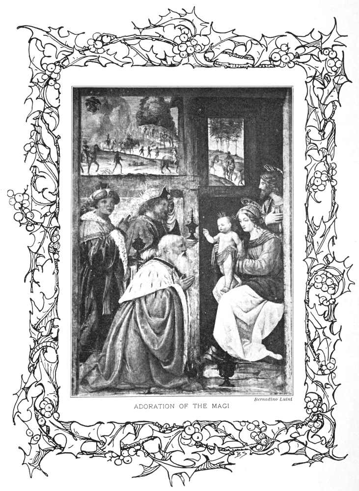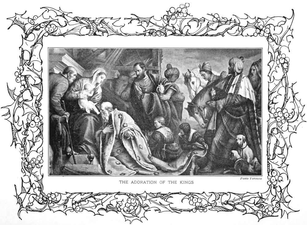 Suppers were swallowed quickly, mine at my grandmother’s, and then we all ran to the church. Sure enough, high above the manger hung the glittering star, and on bended knees before the Holy Child were the Three Kings—Gaspar, in a crimson cloak, with gifts of gold; Melchior, in yellow, offering incense; and Balthasar, in a mantle blue, presenting a vase of myrrh. How reverently we admired the gayly dressed pages who carried the Kings’ long trains, and the great camels whose heads and humps rose high above St. Joseph’s ass and the oxen!...