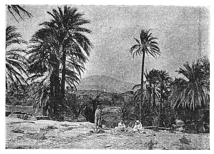 Ces jardins sont enclos de murs en terre. On y pénètre par des portes si basses que l’on n’y peut entrer qu’à plat ventre, en rampant ; les verdures y semblent d’une fraîcheur délicieuse. Ils sont plantés dans cette région de palmiers, de figuiers, de grenadiers et de lauriers-roses. La vigne court d’un arbre à l’autre, franchit les allées de sable fin. Dans le potager, les choux et les salades font une ceinture aux couches de pastèques. Tous ces plants sont reliés entre eux par un système très savant de petits canaux qui tournent autour des arbres et viennent se déverser, à l’entrée comme à la sortie du jardin, dans une artère principale qui crève la muraille. Selon la richesse du propriétaire, l’eau lui est donnée deux fois par jour, ou seulement une fois, ou même un jour sur deux. Et cette répartition est réglée avec une impartialité, une ingéniosité de moyens tout à fait surprenantes.