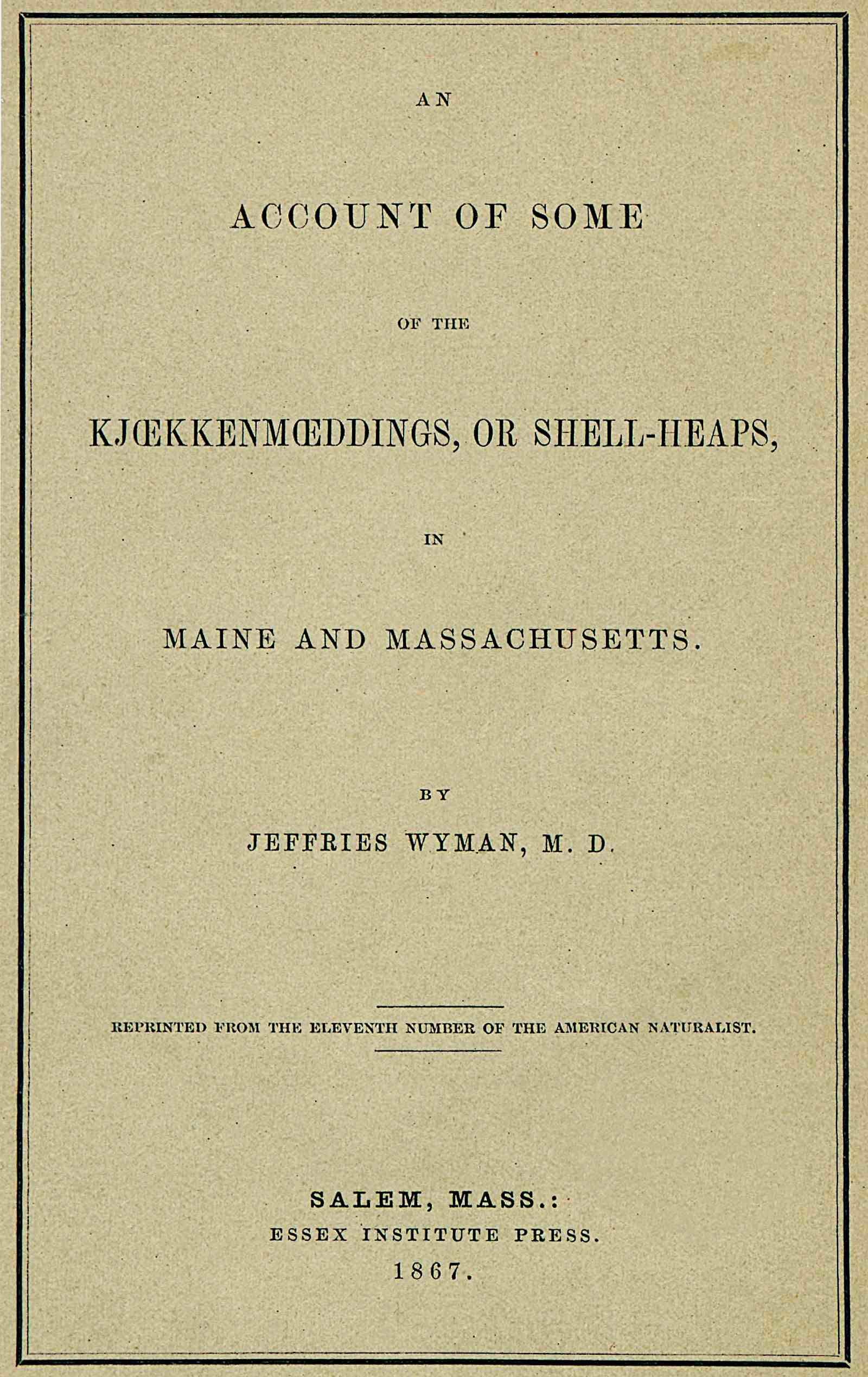 Title: An account of some kjoekkenmoeddings, or shell-heaps, in Maine and Massachusetts
