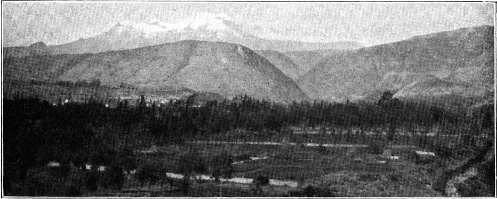 Übrigens darf man sich das Gebirgspanorama[22] von Riobamba nicht alpin im europäischen Sinn vorstellen, nicht als ein Amphitheater oder als eine Kette von Schneegipfeln. Es ist nicht das »großartigste Diorama der Welt«, wie es der Reisende Boussingault in französischer Überschwenglichkeit im Jahr 1831 genannt hat; sondern in weiter Entfernung, so daß Einzelheiten nur mit dem Glas zu erkennen sind, zieht im Westen des weiten Riobambabeckens der lange Gebirgswall der Westkordillere, im Osten der der Ostkordillere nordsüdwärts, und vereinzelt sitzen auf, respektive an ihnen die schneeigen Vulkankegel in großen Abständen: auf der Ostkordillere der zackige Altar mit der matterhornähnlichen Obispo-Spitze und der von hier der Königsspitze gleichende Tunguragua; auf der Westkordillere der mehrgipfelige Carihuairazo und der gewaltige Chimborazo-Dom. Im ganzen kein zusammenschließendes, einheitliches Hochgebirgspanorama, sondern weitverstreute Einzelbilder.
