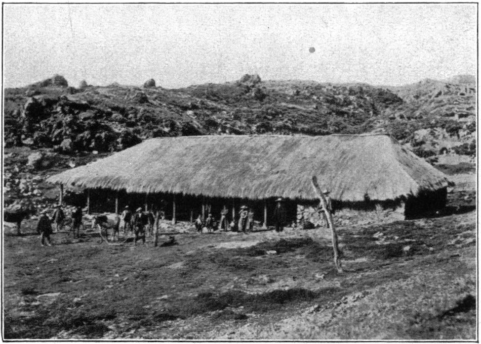 Gegen 2 Uhr trafen wir an der obern Grenze des Feldbaues[37] (Gerste 3450 Meter) auf die große, von Guamote nach Quito führende Fahrstraße, folgten ihr nordwärts und waren in kurzem vor einem mit verfallenden Tuffmauern umfriedeten Gehöft von drei großen viereckigen Lehmhütten angelangt, dem Tambo Chuquipoquio (3628 Meter). Er liegt schon in der unwirtlichen Region des Páramo. Schon wartete unser der im voraus benachrichtigte Mayordomo und präsentierte mir ein Dutzend junger und alter Indianer, von denen ich die acht kräftigsten als Träger (Peones) für die Chimborazotour aussuchte. Die Kosten waren mäßig. In einem dunkeln, mit zwei wackeligen Bettstellen bestandenen Verschlag richteten wir uns nach Möglichkeit mit unseren Schlafsäcken und Decken ein, während sich auf dem Hof ein neugieriges Gesindel von Arrieros und Peones herumtrieb, die hier mit ihren Karawanen von Eseln, Pferden und Maultieren auf der Reise von oder nach Quito nächtigten. Aber keine Zudringlichkeit, kein Lärmen genierte uns; das liegt nicht in der passiven Art der ecuatorianischen Indianer und Mischlinge.