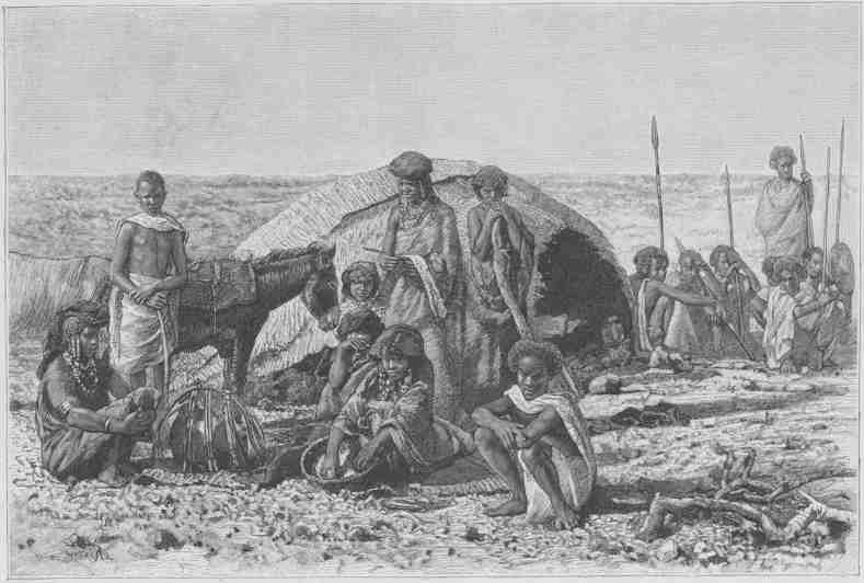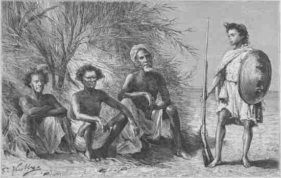 Ces mœurs sanguinaires s'harmonisent si bien avec le caractère de la race, qu'un homme ne saurait trouver femme s'il n'a prouvé sa valeur par l'assassinat de l'un de ses semblables. Les familles prévoyantes achètent même de vieux nègres affaiblis et les livrent à leurs enfants en bas âge; les chers bébés peuvent ainsi conquérir la plume noire et satisfaire sans danger à la loi cruelle de la tribu.