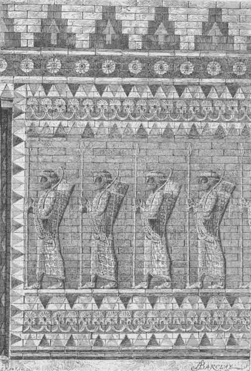| 61. Fragment d'une frise émaillée.—Dessin de P. Sellier, d'après un croquis de M. Dieulafoy | 160 |
