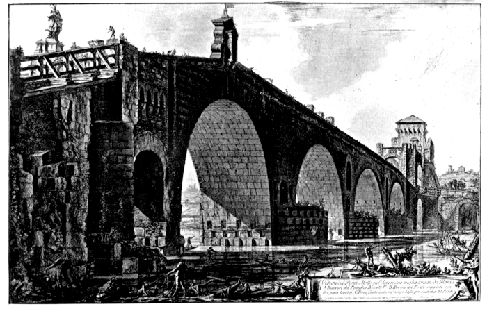 I tarried in Lucca the Friday and Saturday[Pg 36] and left it on Sunday after dinner, of which I did not partake, as I was fasting. The hills nearest to the town are thickly set with pleasant houses. Our way for the most part lay along a low-lying road, fairly level, and running between the mountains, which are well wooded and peopled throughout, the river Serchio flowing beside us. We passed several villages and two strong towns, Reci and Borgo, and we crossed likewise the river aforesaid, which was on our right hand, by a bridge of unwonted height, which spans almost the entire width of the stream with a single arch. We saw several other bridges of this kind on our way, and arrived at Bagni della Villa,42 sixteen miles distant, two hours after noon.