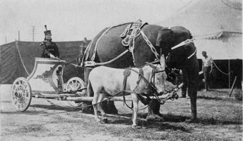 All through the town the word spread that a living thing—two living things, in fact—had survived the death trap. The crowds gathered; it was as though conquering heroes had returned from a war. The townspeople even forgave Frieda and refused damages when it was learned that she had ambled from her landing point to a livery yard and caused a panic among the horses stabled there.[260] That night the tents were unable to contain the crowds that thronged to see the elephants which had braved the whirlpools. And in the years to come, the simple announcement of the coming of the circus was enough to insure the influx of thousands of dollars, as long as it contained the assurance that the death-trap elephants would be a part of the performance.
