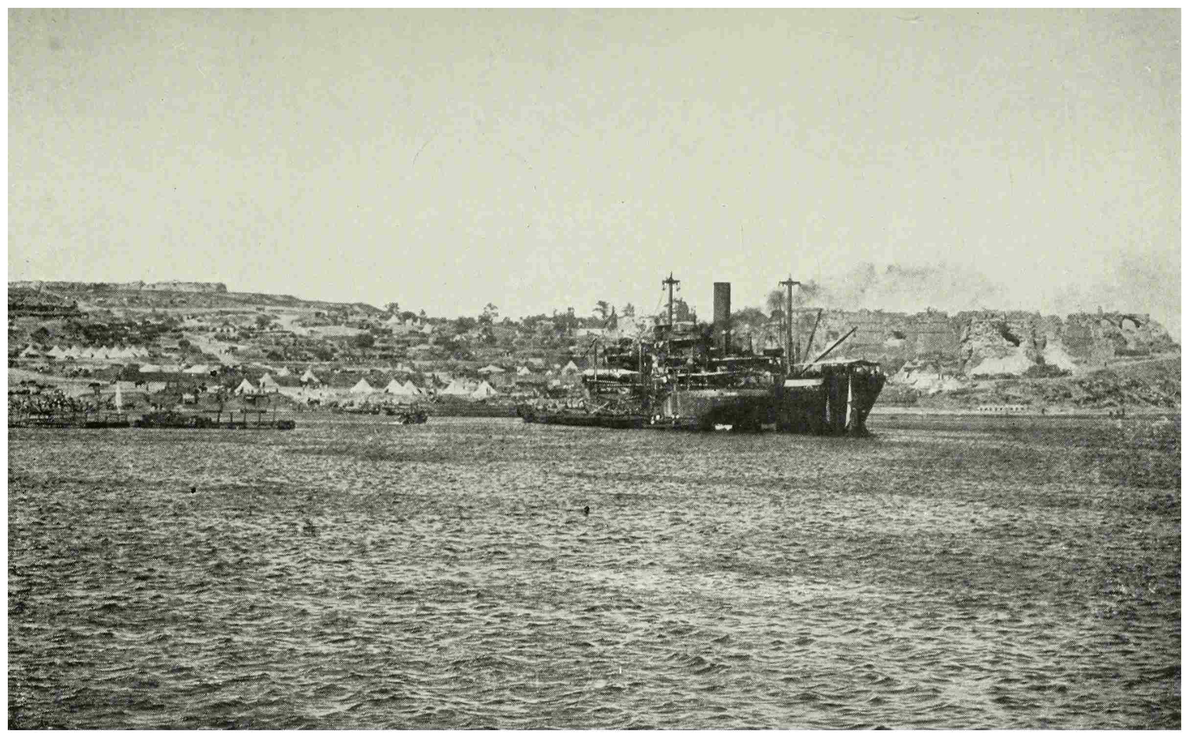 214 One of the transports (the Southland), conveying a battalion of the 2nd Australian Division, was torpedoed on September 2, thirty-one miles from Mudros. The firemen took to the boats, but the engineers kept sufficient head of steam to work the pumps and electric light. Finding she was filling only slowly, they called for soldier volunteers to help with the stoking, and in an hour got steam up to the blowing-off point. The destroyer Racoon, which had come alongside, was then able to supply practised stokers, and they, with the engineers, stoked the boilers into Mudros harbour.