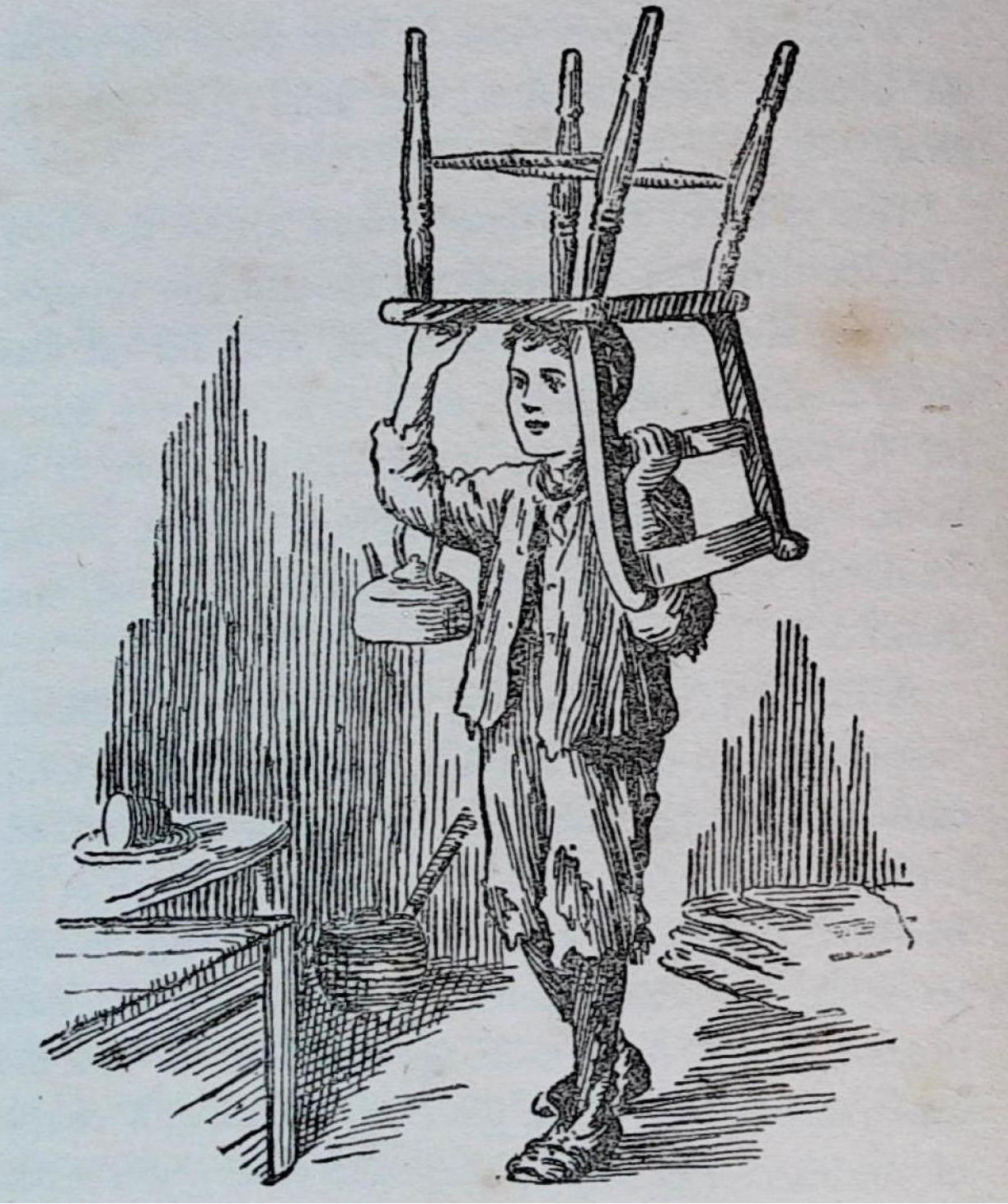 A merry party were the three over their dinner. Jasper had to share the fish, and then his pudding came as second course, after which they all adjourned to the far end of the shed, in search of the Mellors' furniture, which he was obliging enough to store for them during their absence. And indeed it did not take up much room—an old mattress, two or three pieces of bedding, a couple of chairs, one or two stools, some crockery, a kettle, and an old box which did duty for a table; these comprised the whole of the family possessions.